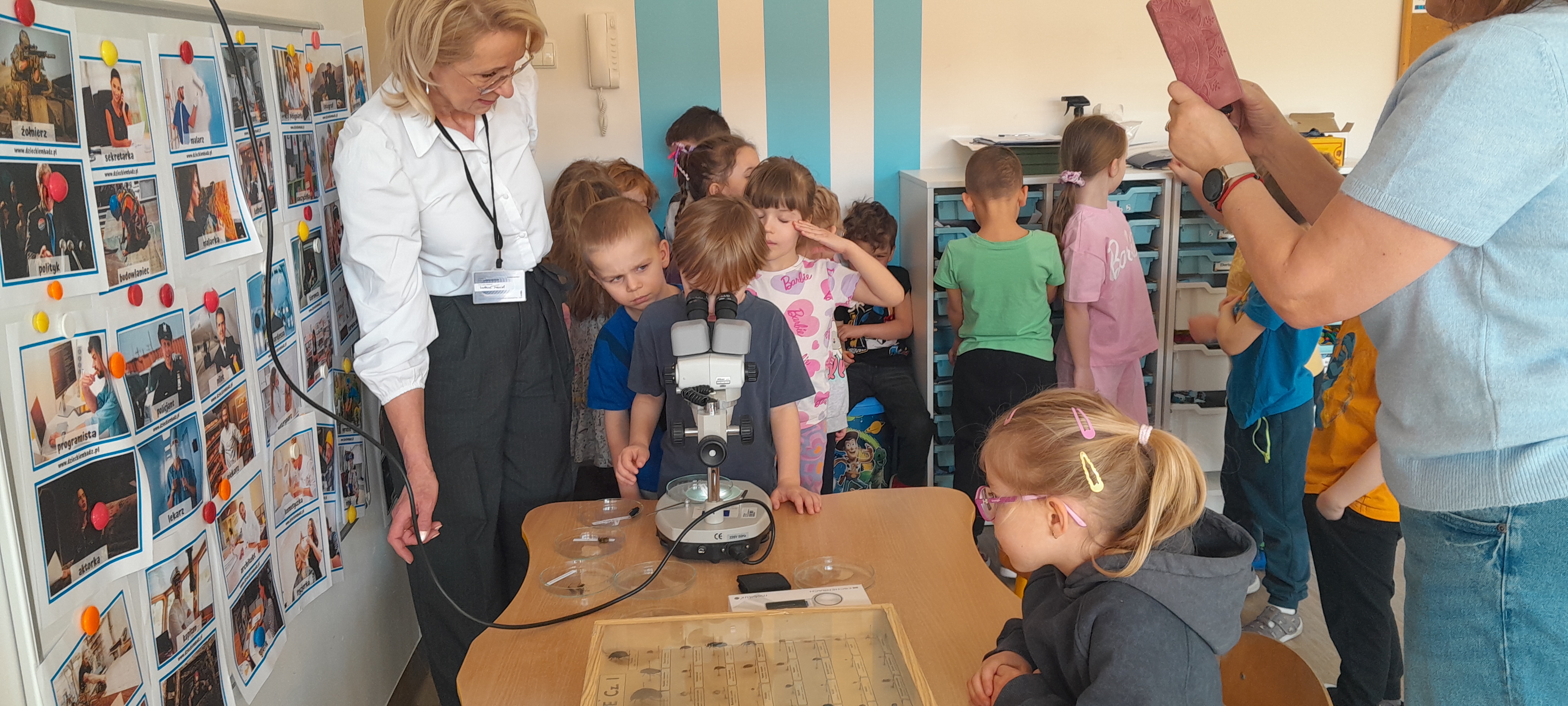 Przedszkolaki samodzielnie używały podświetlanych lup oraz oglądały owady pod mikroskopem, a także chętnie wypełniały łamigłówki związane z budową roślin. Na zakończenie spotkania wszyscy otrzymali Legitymacje Młodego Inspektora Ochrony Roślin oraz drobne upominki.