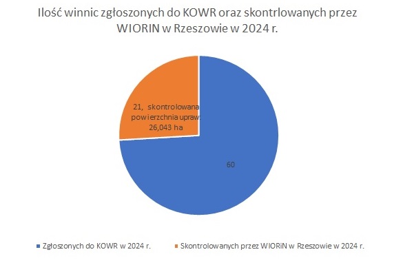 W 2024 r. Do KOWR zgłoszono 60 winnic znajdujących się na terenie województwa podkarpackiego. Inspektorzy Wojewódzkiego Inspektoratu Ochrony Roślin i Nasiennictwa w Rzeszowie skontrolowali 21 winnic o łącznej powierzchni 26,043 ha.