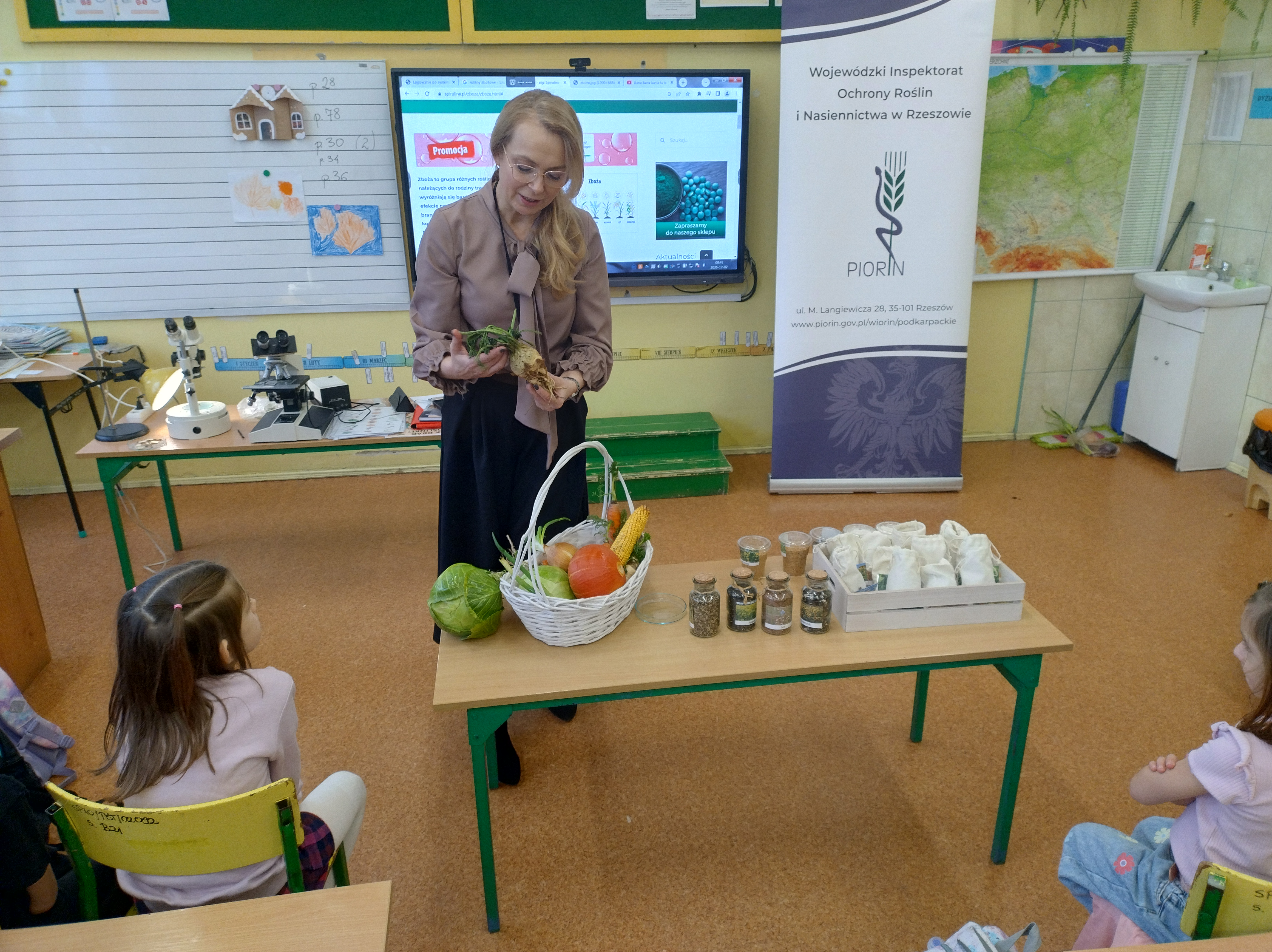 2 grudnia 2025 r. uczniowie klasy pierwszej Szkoły Podstawowej nr 10 w Tarnobrzegu uczestniczyli w wyjątkowej lekcji przyrody, którą przeprowadziły Panie Inspektor z Wojewódzkiego Inspektoratu Ochrony Roślin i Nasiennictwa we Rzeszowie – Oddział w Tarnobrzegu Angelika Matusiewicz i Dorota Widuch.
