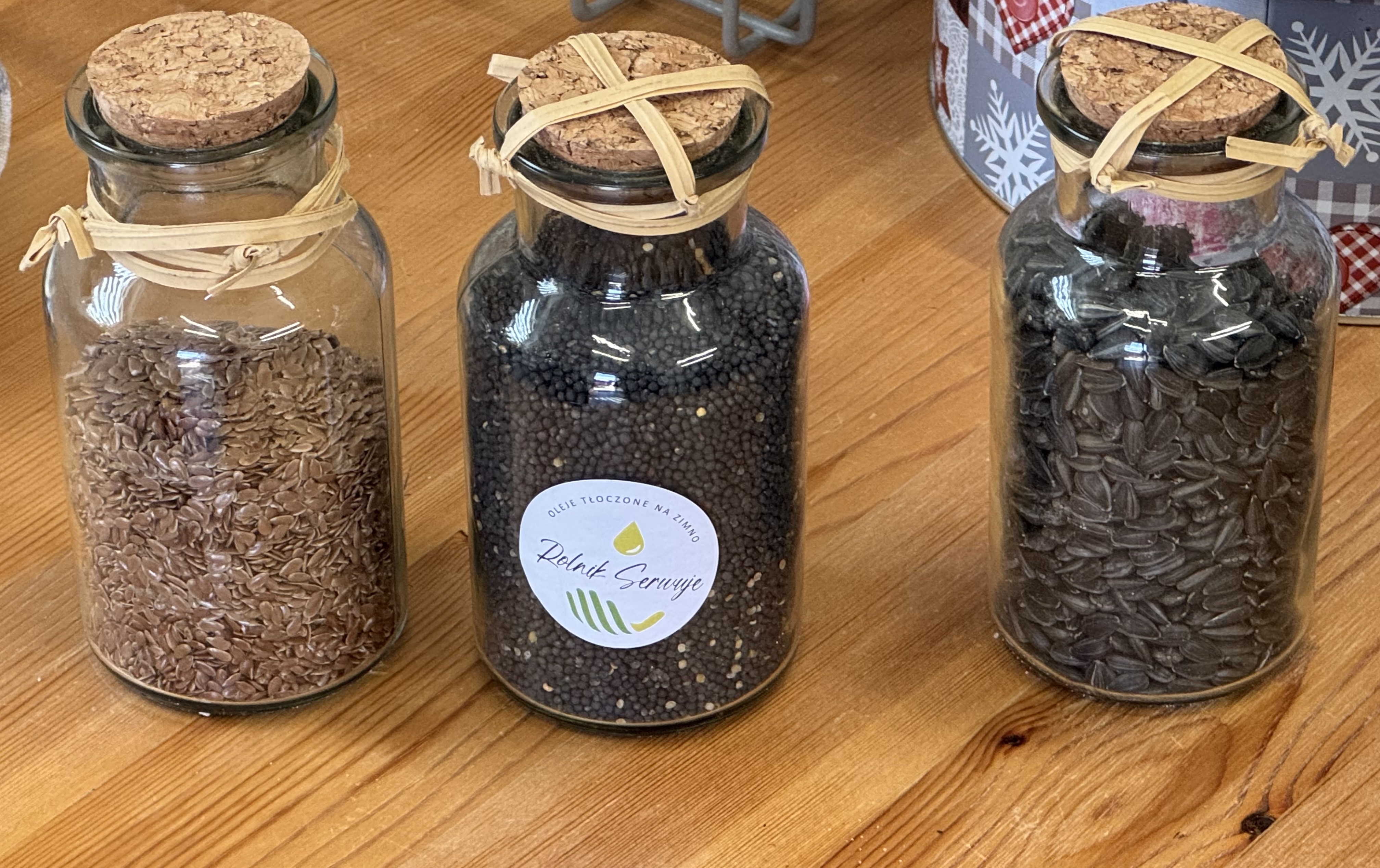 Państwo Kuchtowie swoją wiedzę oraz zamiłowanie do rolnictwa wykorzystali do stworzenia rodzimego produktu, który może z powodzeniem konkurować z produktami sprowadzanymi z innych krajów. Rodzina od dwóch lat zajmuje się produkcją olejów tłoczonych na zimno z własnych nasion: słonecznika, rzepaku i lnu. Ten w 100% naturalny olej może stanowić doskonałą alternatywę dla oliwy z oliwek – eliksiru zdrowia i urody, który przecież musi być importowany. Jak podkreślają rolnicy, ich celem było stworzenie produktu finalnego, który będzie od początku do końca wytworzony w ich gospodarstwie, aby inni mogli dosłownie dotknąć ich pracy i poczuć to, czym się zajmują. Swoją ofertą chcieli wyróżnić się na rynku, stworzyli produkt w odpowiedzi na negatywne zjawiska w rolnictwie i pogarszającą się dochodowość produkcji. Podkreślają, że cały proces produkcji jest zamknięty, bez odpadów, na czym bardzo im zależało. Tłoczenie na zimno odbywa się za pomocą specjalnej maszyny, a wytłoczyny (makuch), które powstają w tym procesie są wykorzystywane na paszę dla zwierząt. Butelki są zwrotne, natomiast prąd wykorzystywany w produkcji pochodzi z własnej instalacji fotowoltaicznej. Producenci są dumni, że nie zanieczyszczają niepotrzebnie cennego środowiska.