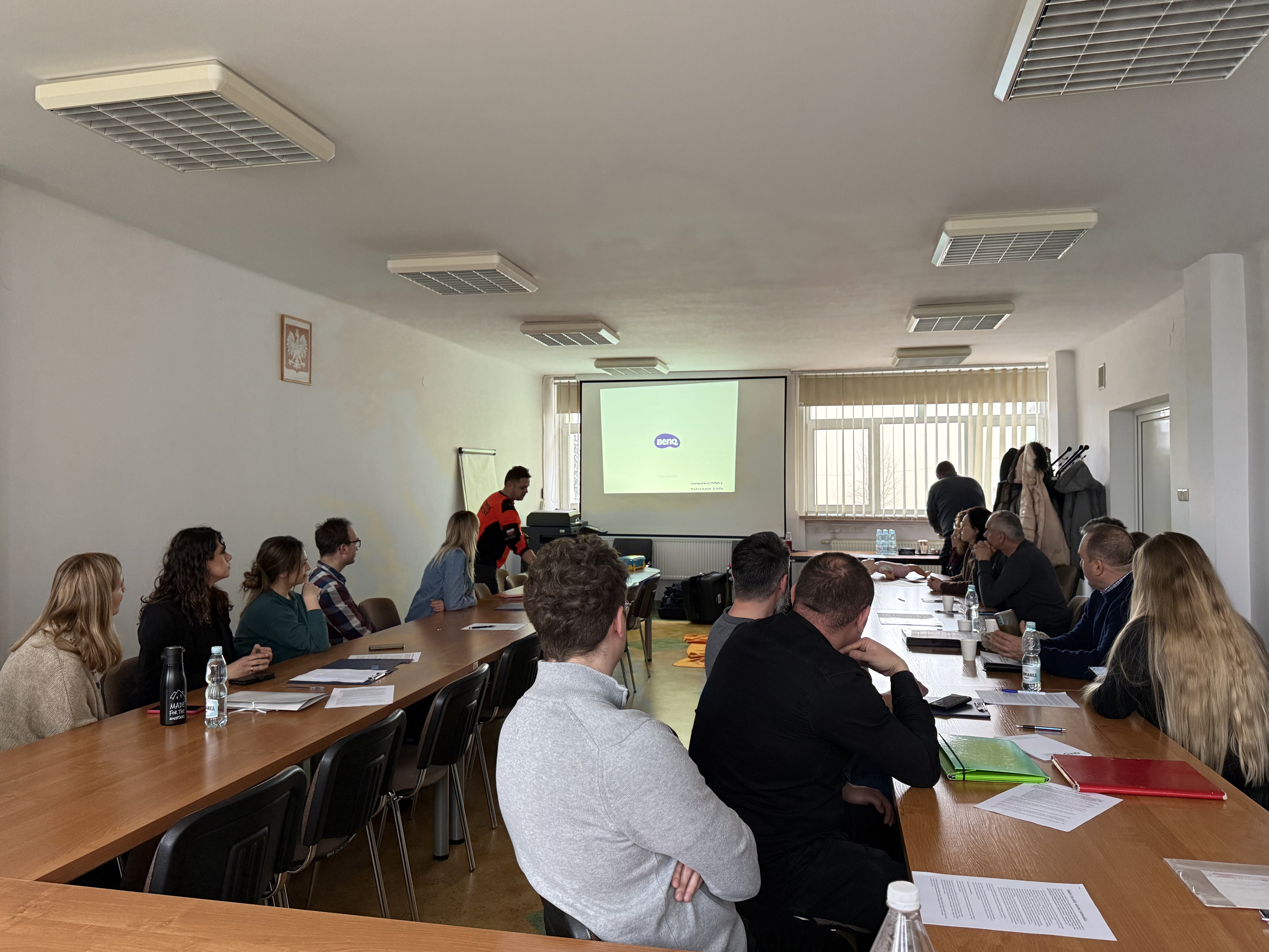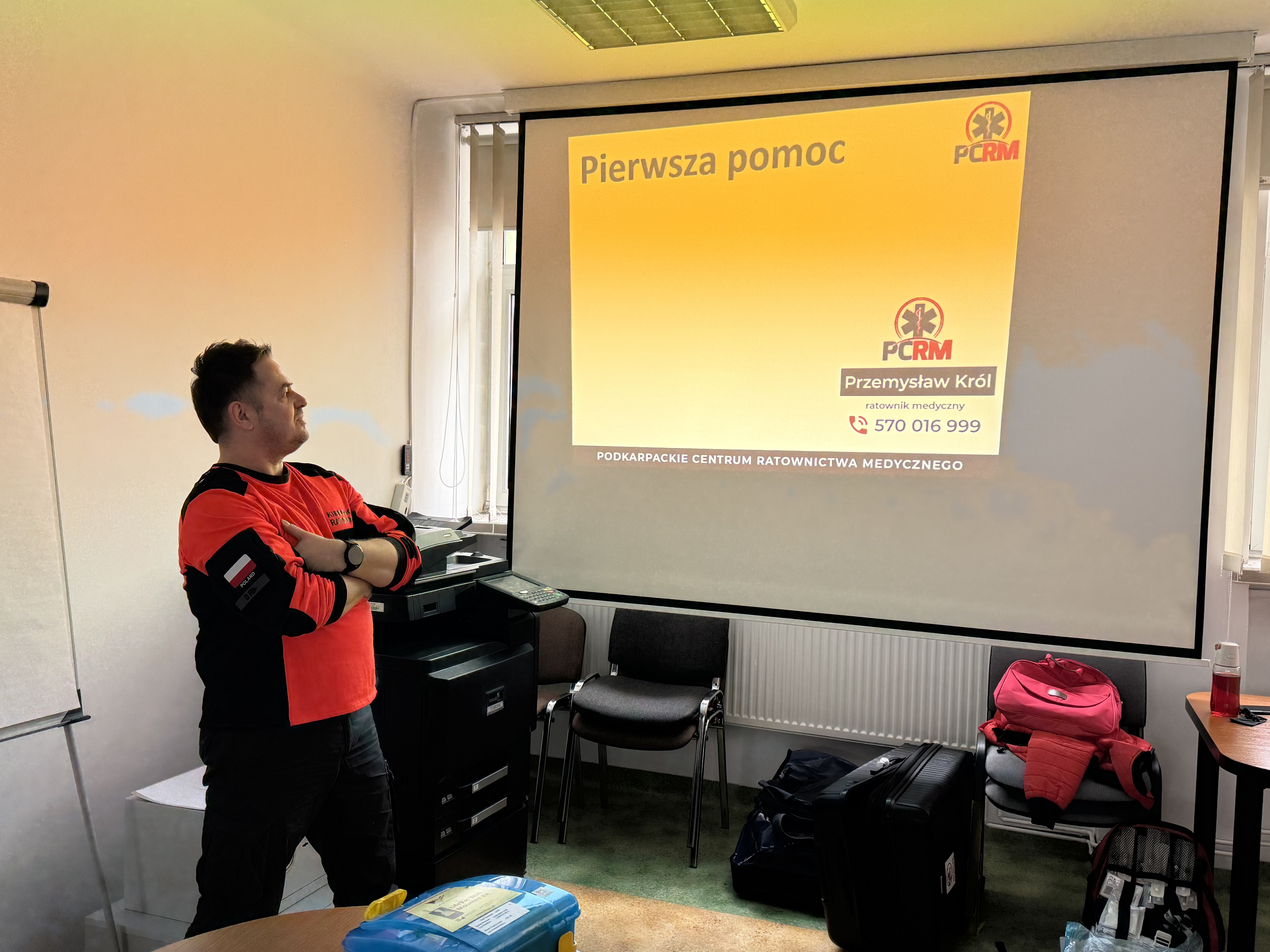 Szkolenie zostało przeprowadzone przez Podkarpackie Centrum Ratownictwa Medycznego, doświadczony ratownik medyczny Pan Tomasz Barański omówił kluczowe zagadnienia związane z bezpiecznym wykonywaniem obowiązków służbowych. Poruszono tematy takie jak aspekty prawne udzielania pierwszej pomocy, postępowanie z osobą nieprzytomną, wybrane jednostki chorobowe, pierwsza pomoc przedlekarska oraz zasady użycia defibrylatora AED.