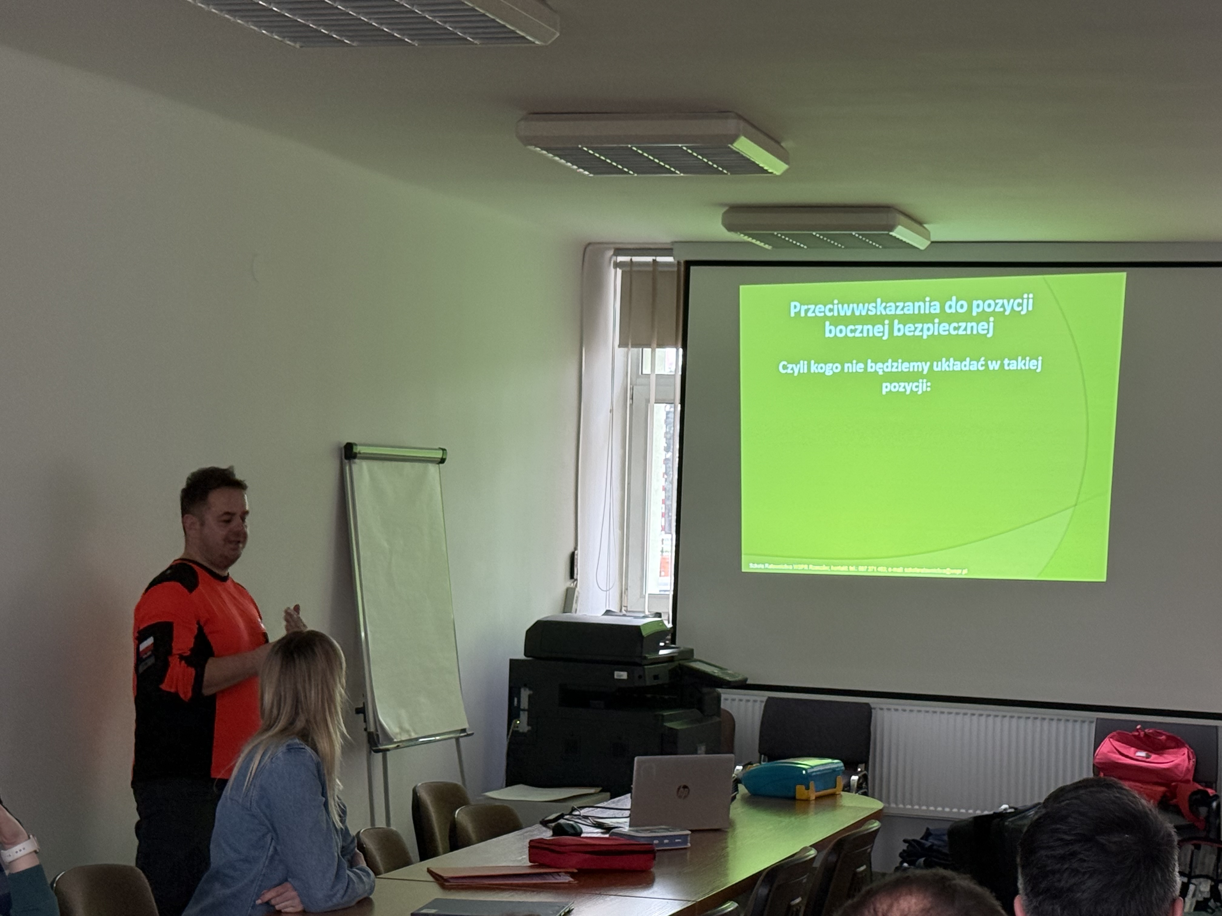 Jednym z najważniejszych elementów szkolenia były ćwiczenia praktyczne z zakresu udzielania pierwszej pomocy, obejmowały one m.in.: