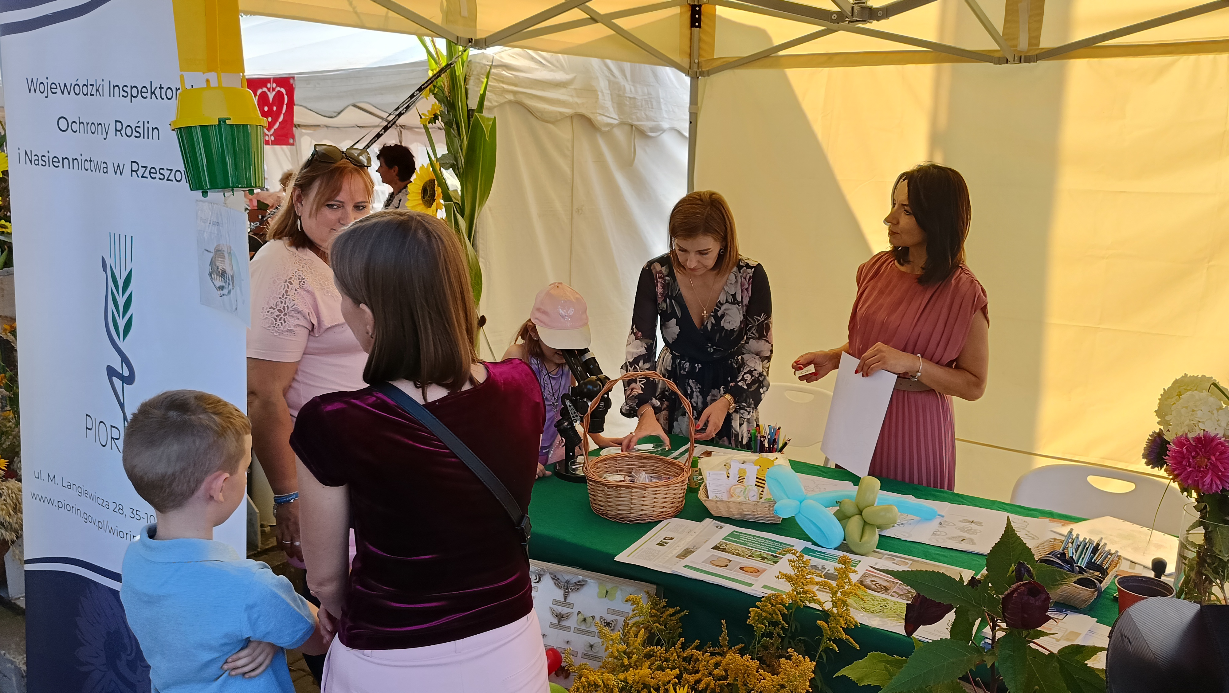 W wydarzeniu uczestniczyli również pracownicy Wojewódzkiego Inspektoratu Ochrony Roślin i Nasiennictwa w Rzeszowie Oddział w Kolbuszowej - Zofia Serafin i Anna Hopek oraz sympatyczna maskotka Pesty. Na specjalnym stoisku prezentowano materiały informacyjne oraz prowadzono działania promocyjne. Zainteresowanym przybliżono zagadnienia związane z nowymi zagrożeniami fitosanitarnymi, zasadami bezpiecznego stosowania środków ochrony roślin (z uwzględnieniem bezpieczeństwa pszczół), a także kwestiami dotyczącymi przemieszczania i obrotu ziemniakami, nadzoru nad zdrowotnością roślin oraz obrotem materiałem siewnym. Zaprezentowano również kolekcję owadów i pułapki do odłowu agrofagów kwarantannowych. Uczestnicy mieli możliwość obejrzenia przygotowanych eksponatów pod mikroskopem. Na stoisku czekały materiały informacyjne (ulotki), długopisy, breloczki, smycze a na najmłodszych kolorowanki, wycinaki, cukierki, „legitymacje młodego inspektora”, oraz kolorowe balony z których skręcano motylki i kwiaty.