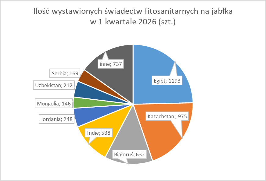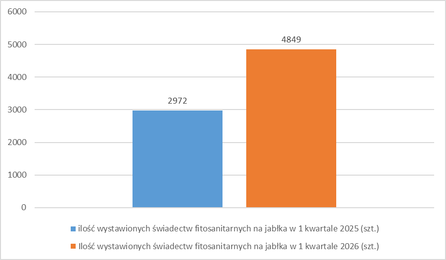 Wykres 4: Ilość wystawionych śwaidectw fitosanitarnych na jabłka w 1 kwartale 2026 (szt.)