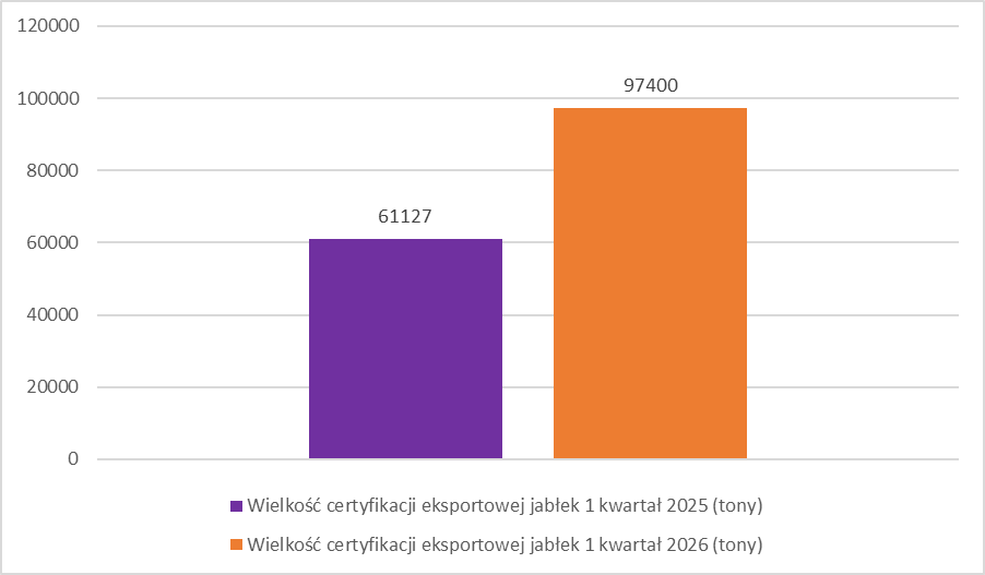 Prawie 100 000 ton jabłek poddanych certyfikacji eksportowej w okresie od stycznia do marca 2026 roku