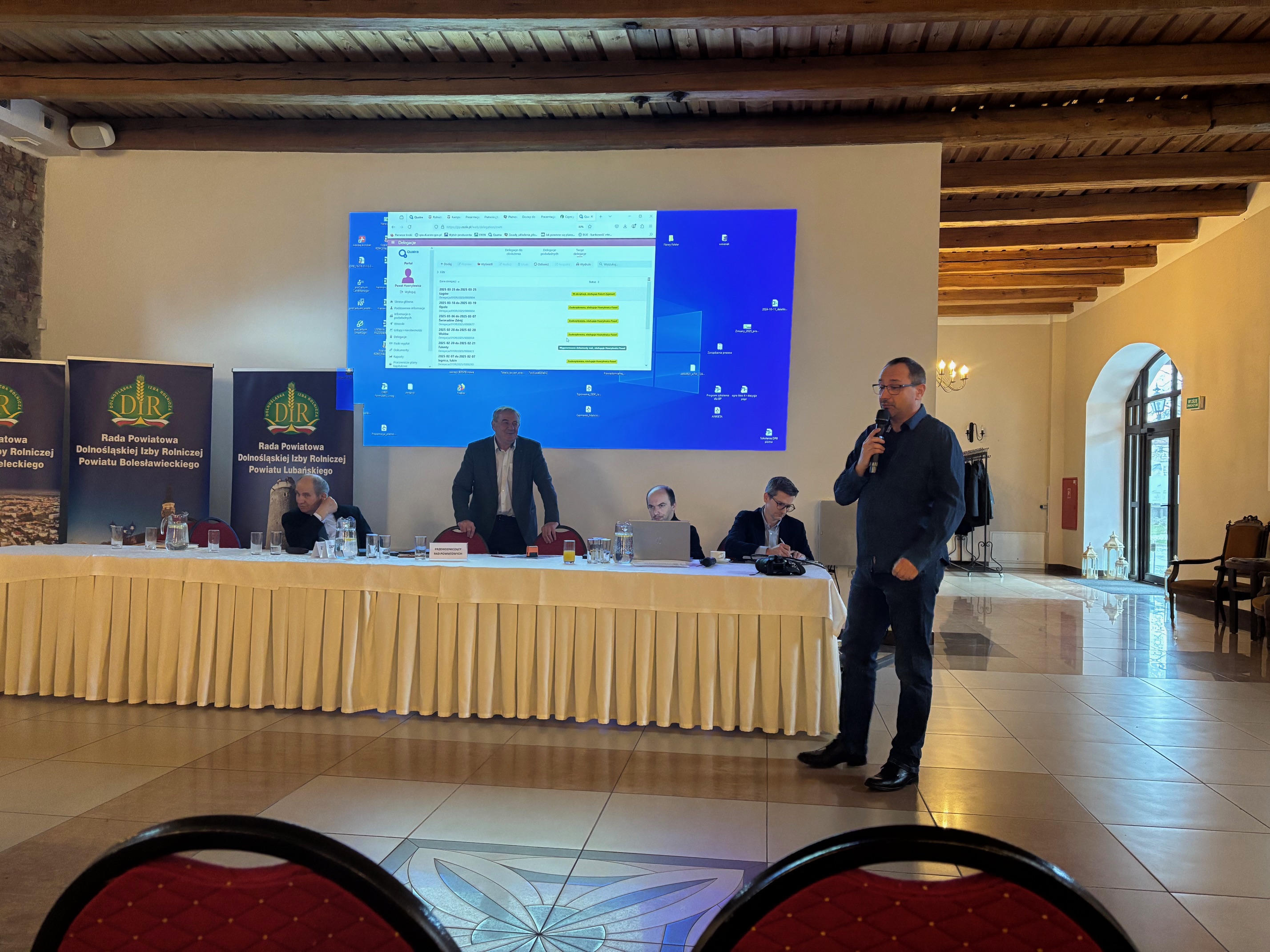 25 marca 2025 r. w Pałacu Łagów koło Zgorzelca odbyła się Konferencja poświęcona zagadnieniom rolnictwa z inicjatywy Powiatowych Rad Dolnośląskiej Izby Rolniczej powiatów zgorzeleckiego, lubańskiego, bolesławieckiego, lwóweckiego i karkonoskiego. Wśród zaproszonych gości byli przedstawiciele powiatowych jednostek działających na rzecz rolnictwa, w tym również WIORiN we Wrocławiu, który był reprezentowany przez inspektorów Oddziału w Zgorzelcu. W trakcie wystąpienia p. Sławomir Siwicki – kierownik Oddziału omówił zasady bezpiecznego wykonywania zabiegów środkami ochrony roślin oraz poinformował uczestników spotkania o aktualnych przepisach w zakresie szkoleń dotyczących środków ochrony roślin i obowiązku przeprowadzania badań potwierdzających sprawność techniczną sprzętu do ich stosowania. Szczególną uwagę zwrócono na zagrożenia wynikające ze stosowania środków ochrony roślin zawierających w swoim składzie substancje czynne takie jak fosforek glinu i magnezu.
