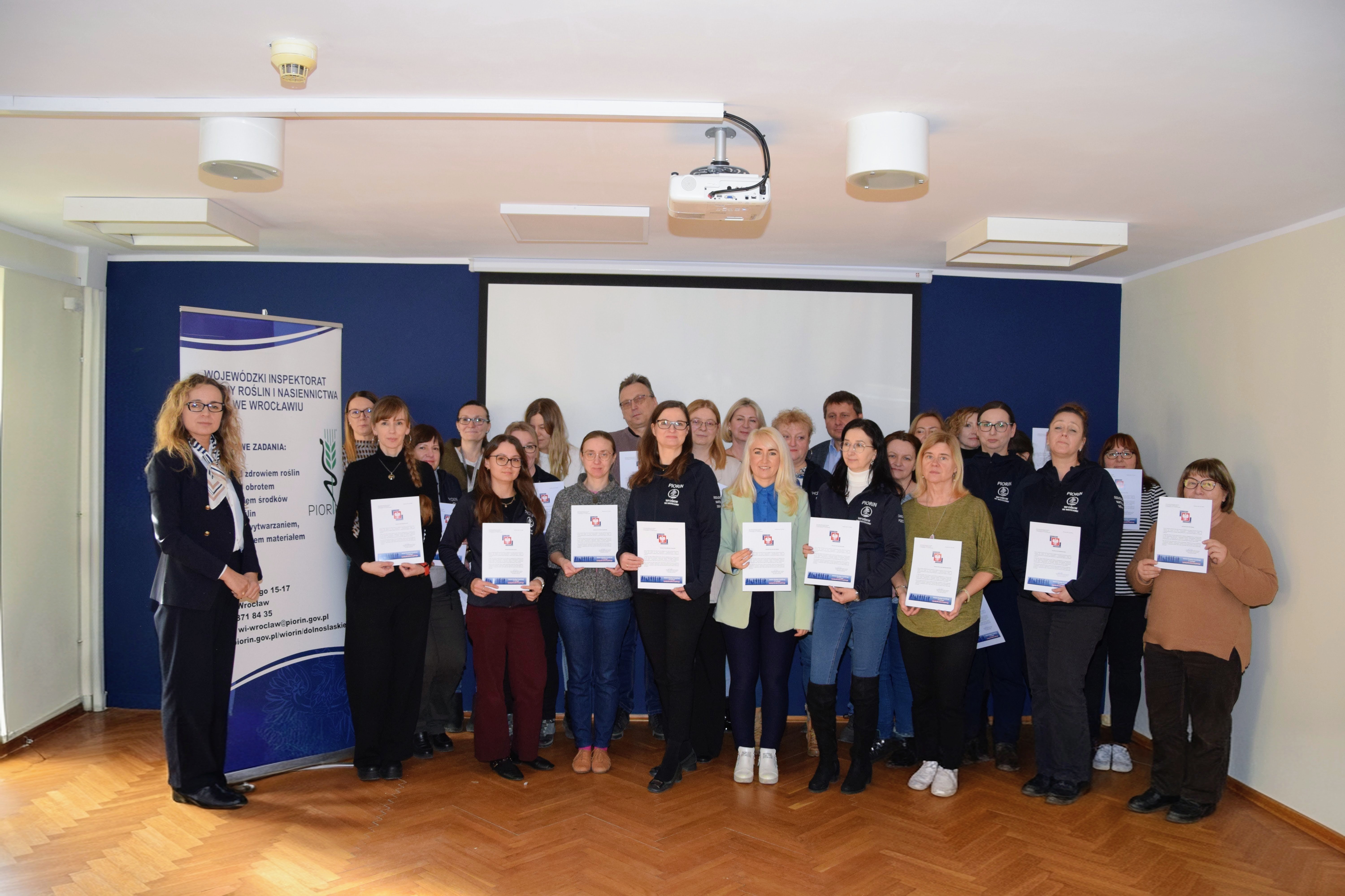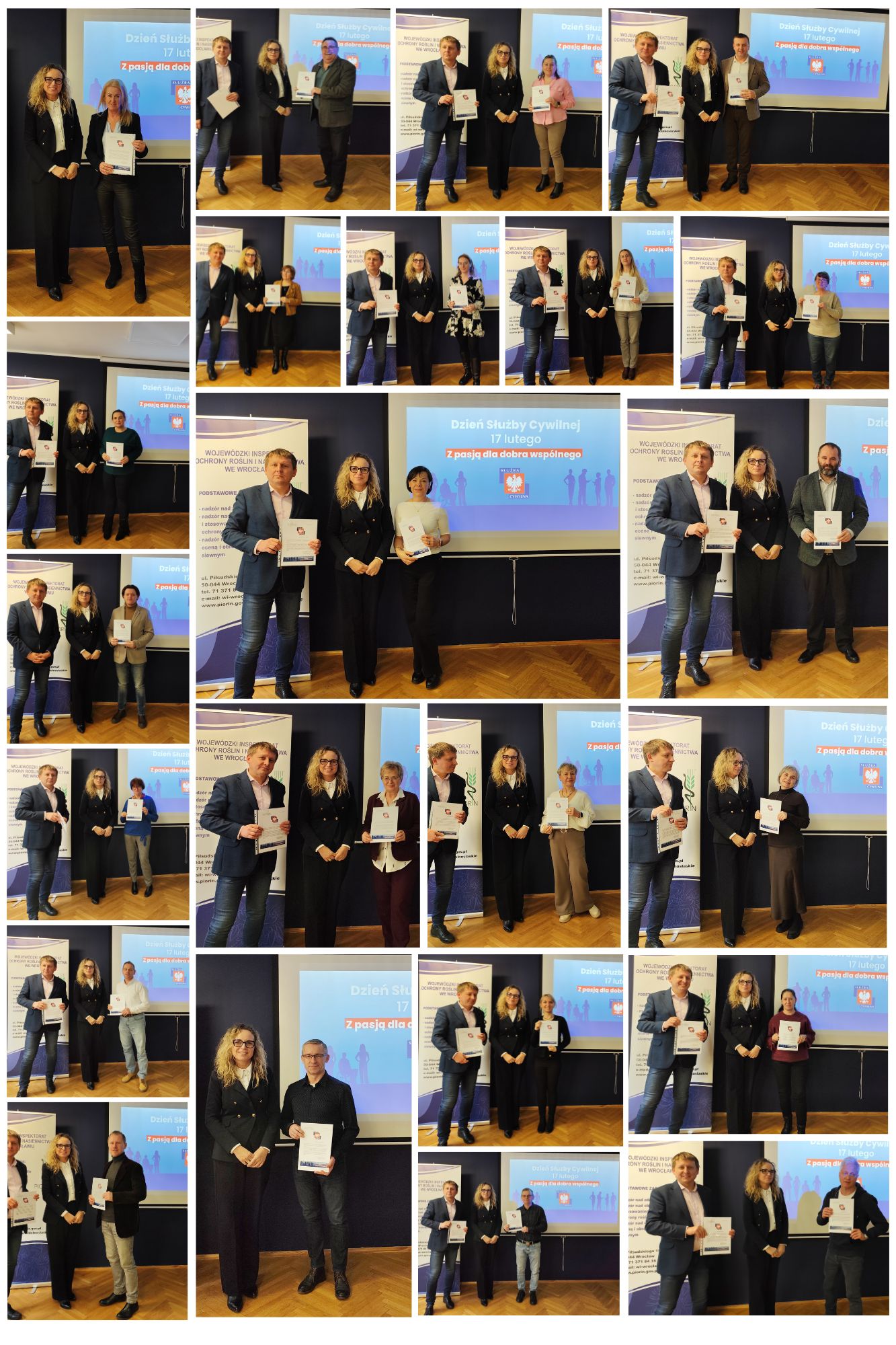 Z okazji przypadającego 17 lutego Dnia Służby Cywilnej wszyscy członkowie służby cywilnej WIORiN we Wrocławiu otrzymali od p. Bernadety Kucharskiej - Dolnośląskiego Wojewódzkiego Inspektora Ochrony Roślin i Nasiennictwa dyplomy okolicznościowe z podziękowaniami za profesjonalizm, rzetelność oraz codzienną pracę, które każdego dnia budują sprawną i nowoczesną administrację publiczną. W celu uczczenia tego dnia wykonano pamiątkowe zdjęcia okolicznościowe.
