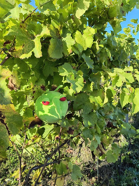 Koniec września to okres kiedy prowadzone są kontrole upraw winorośli. Pesty postanowił wybrać się na taką kontrolę z inspektorami z Działu Nadzoru Nasiennego WIORiN we Wrocławiu. Kontrole te dotyczą upraw winorośli, z których są pozyskiwane owoce do wyrobu wina gronowego przeznaczonego do obrotu. Pesty dowiedział się, że aktualnie na terenie woj. dolnośląskiego jest 77 takich upraw winorośli wpisanych do ewidencji winnic prowadzonej przez Dyrektora Generalnego KOWR. Typowanie winnic do kontroli odbywa się w oparciu o tzw. analizę ryzyka, która ma na celu zapewnienie, że dane w ewidencji winnic są aktualne i zgodne ze stanem rzeczywistym. Sama kontrola obejmuje m.in. sprawdzenie dokumentów dotyczących pochodzenia sadzonek użytych do założenia winnicy i weryfikację, czy uprawiane odmiany są dopuszczone do wyrobu wina oraz lustrację winnicy w terenie. W bieżącym roku nasadzenia winorośli, podobnie jak inne drzewa i krzewy owocowe, ucierpiały wskutek wiosennych przymrozków, które wystąpiły w newralgicznym okresie kwitnienia, w związku z czym nie wydały plonu. Pesty był więc bardzo zawiedziony, że nie miał okazji zobaczyć pysznych dojrzewających owoców. Obejrzał więc nowe nasadzenia, które jeszcze nie owocują.