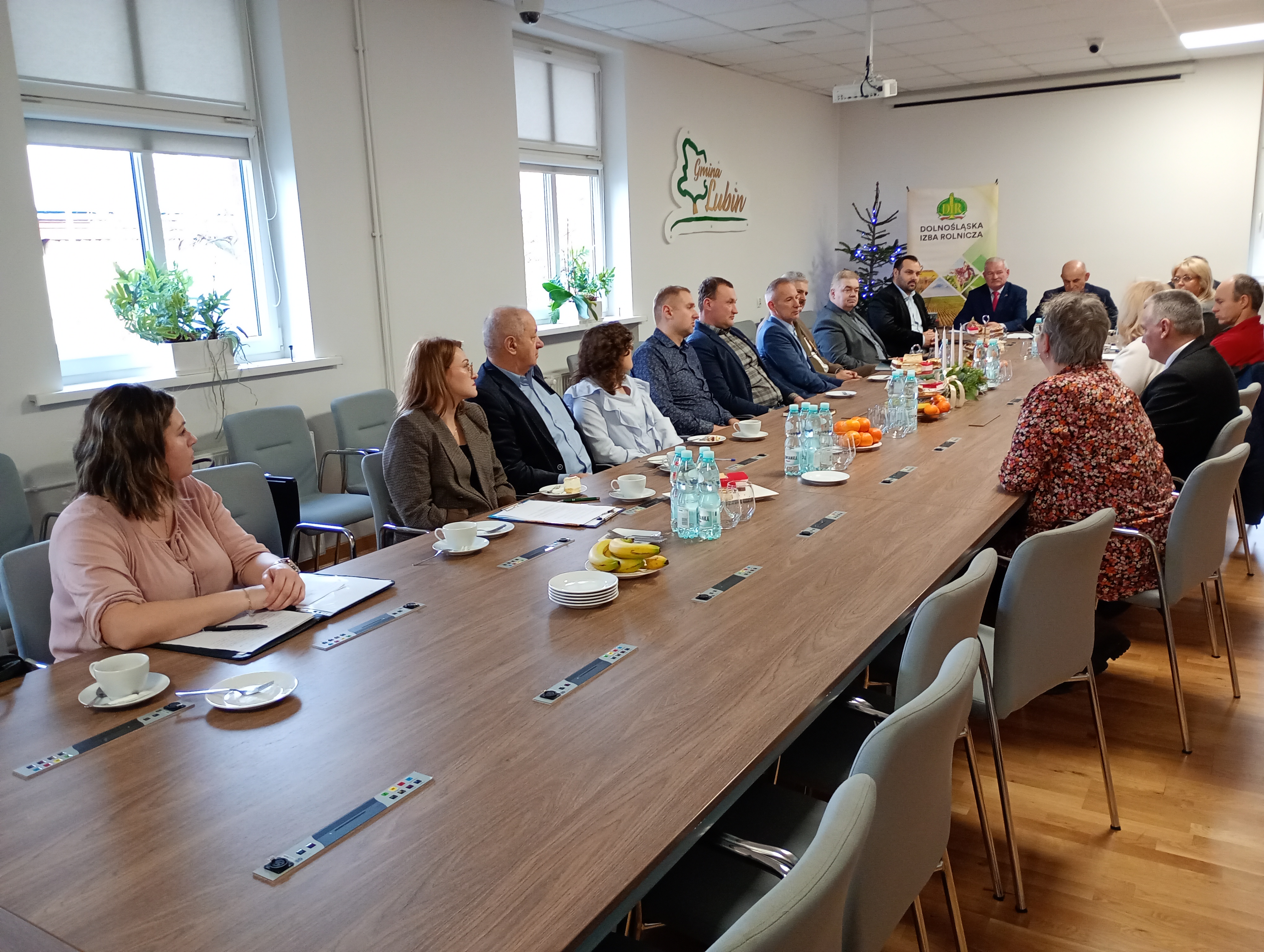 W dniu 9 grudnia 2025 r. w sali konferencyjnej Urzędu Gminy Lubin odbyło się posiedzenie Rady Powiatowej Dolnośląskiej Izby Rolniczej Powiatu Lubińskiego. W spotkaniu uczestniczyli przedstawiciele samorządu rolniczego i lokalnych władz, m.in. Wiceprezes Dolnośląskiej Izby Rolniczej, Przewodniczący Rady Powiatu Polkowickiego DIR, Wójt Gminy Lubin, Burmistrz Miasta i Gminy Ścinawa, Zastępca Wójta Gminy Rudna oraz przedstawiciele instytucji związanych z rolnictwem.
