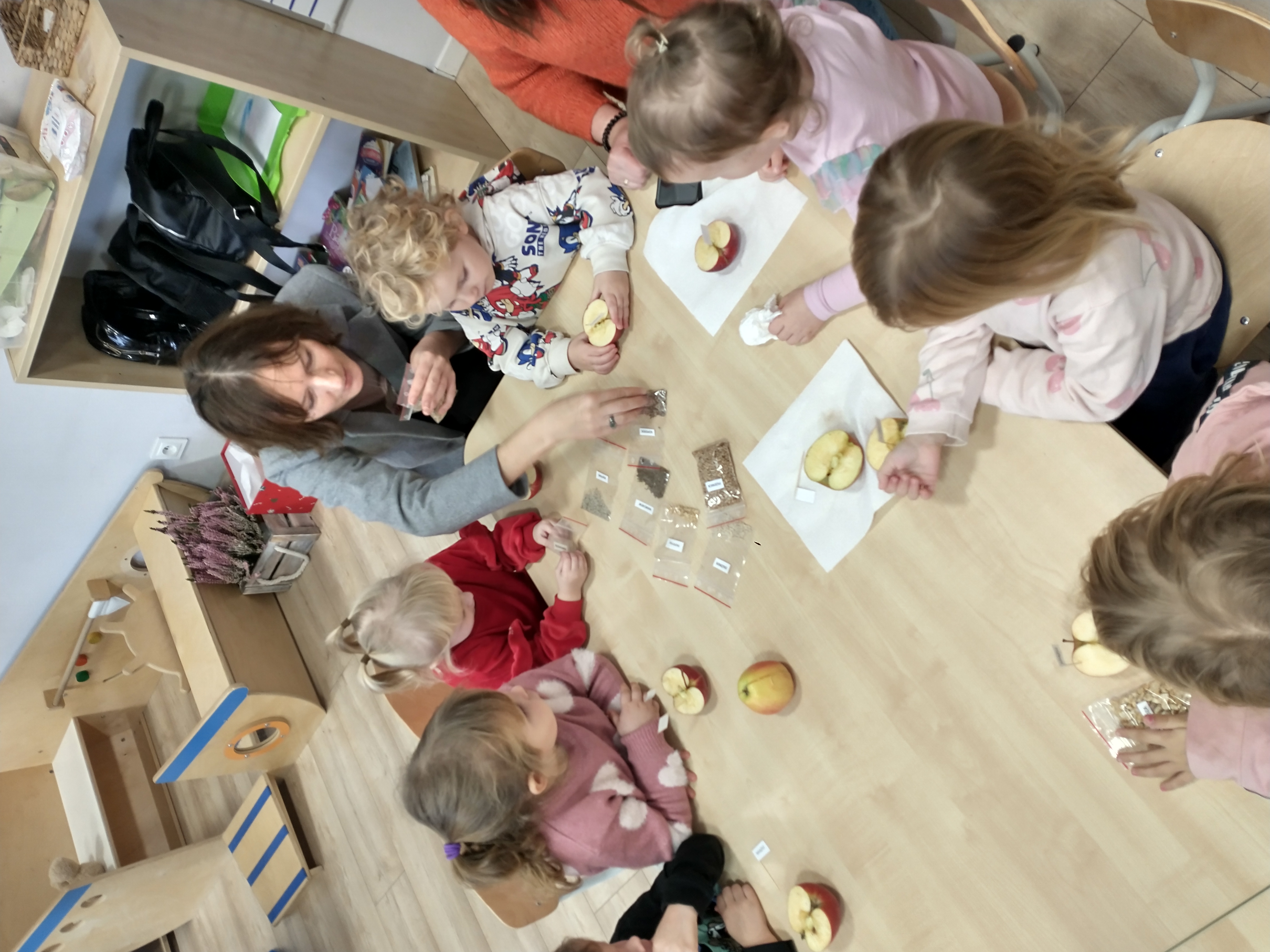się z budowę owocu i funkcją poszczególnych jego części. Młodzi adepci nasiennictwa mieli także okazję zapoznać się nasionami zbóż, roślin motylkowych oraz warzyw, porównywali ich kształty, wielkość i kolor. Oglądali wykiełkowane rośliny groszku, co pozwalało poznać fazy rozwoju rośliny, od jej siewu do wykształcenia części nadziemnej. Każdy miał możliwość wysiania nasion