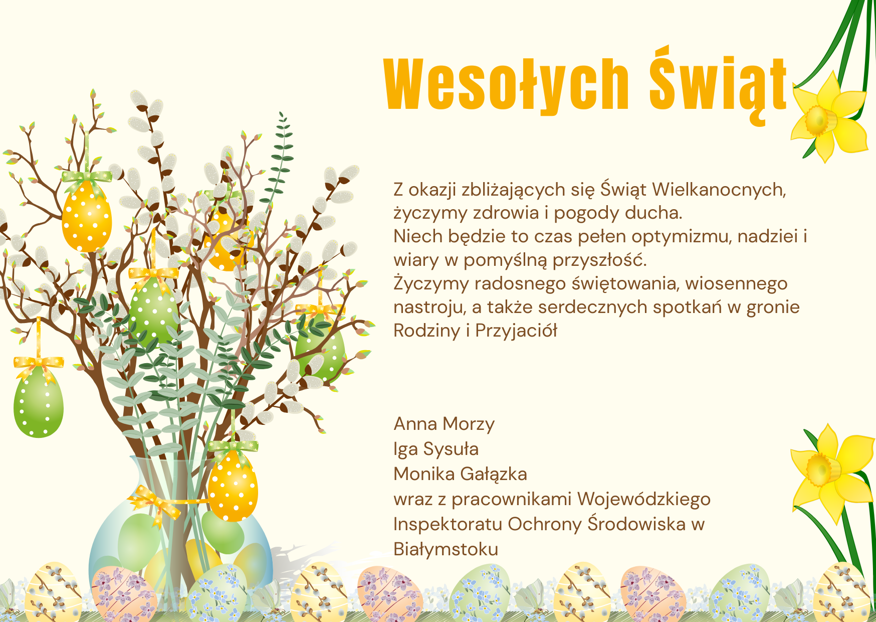 Życzymy radosnego świętowania, wiosennego nastroju, a także serdecznych spotkań w gronie Rodziny i Przyjaciół