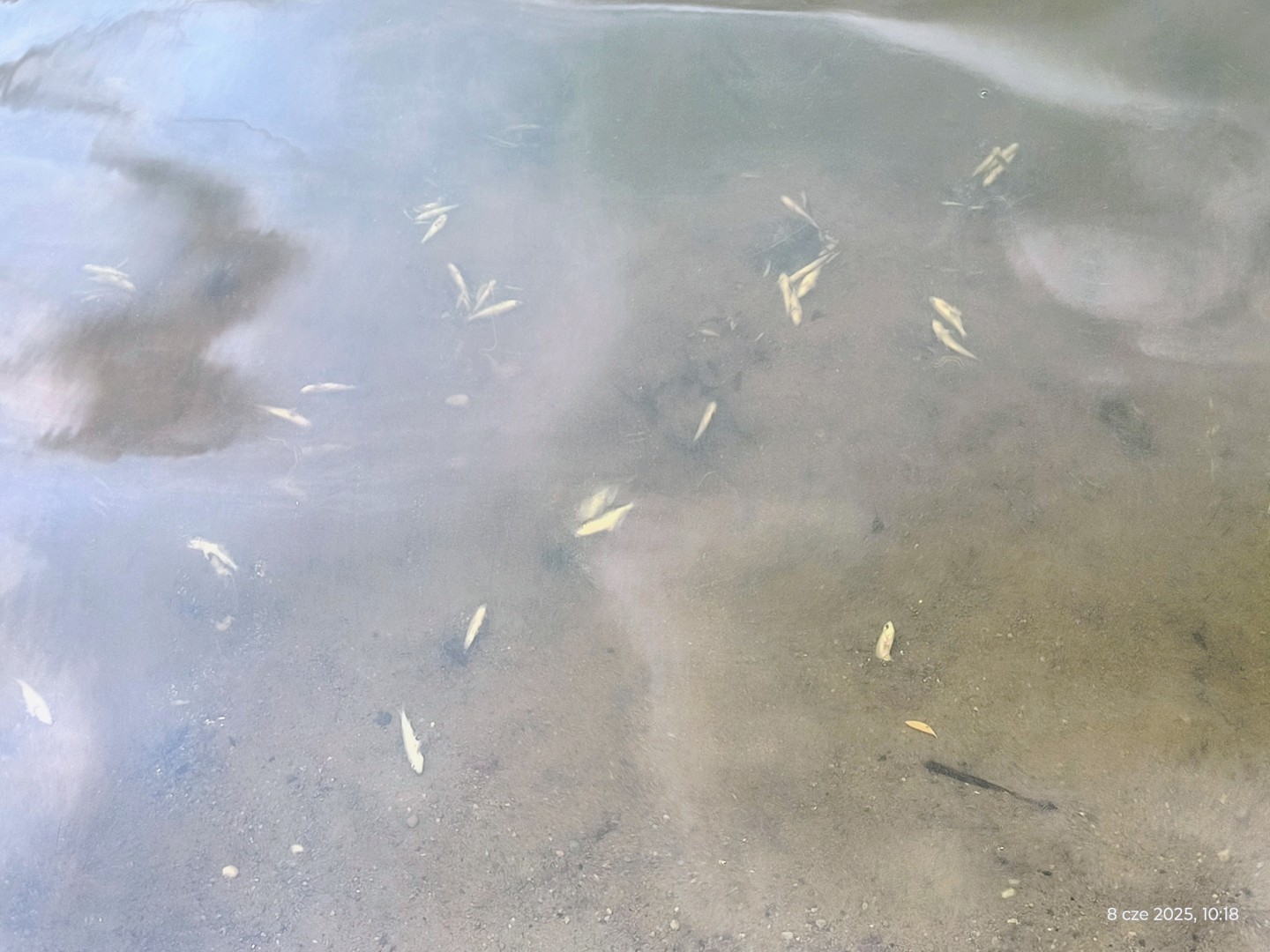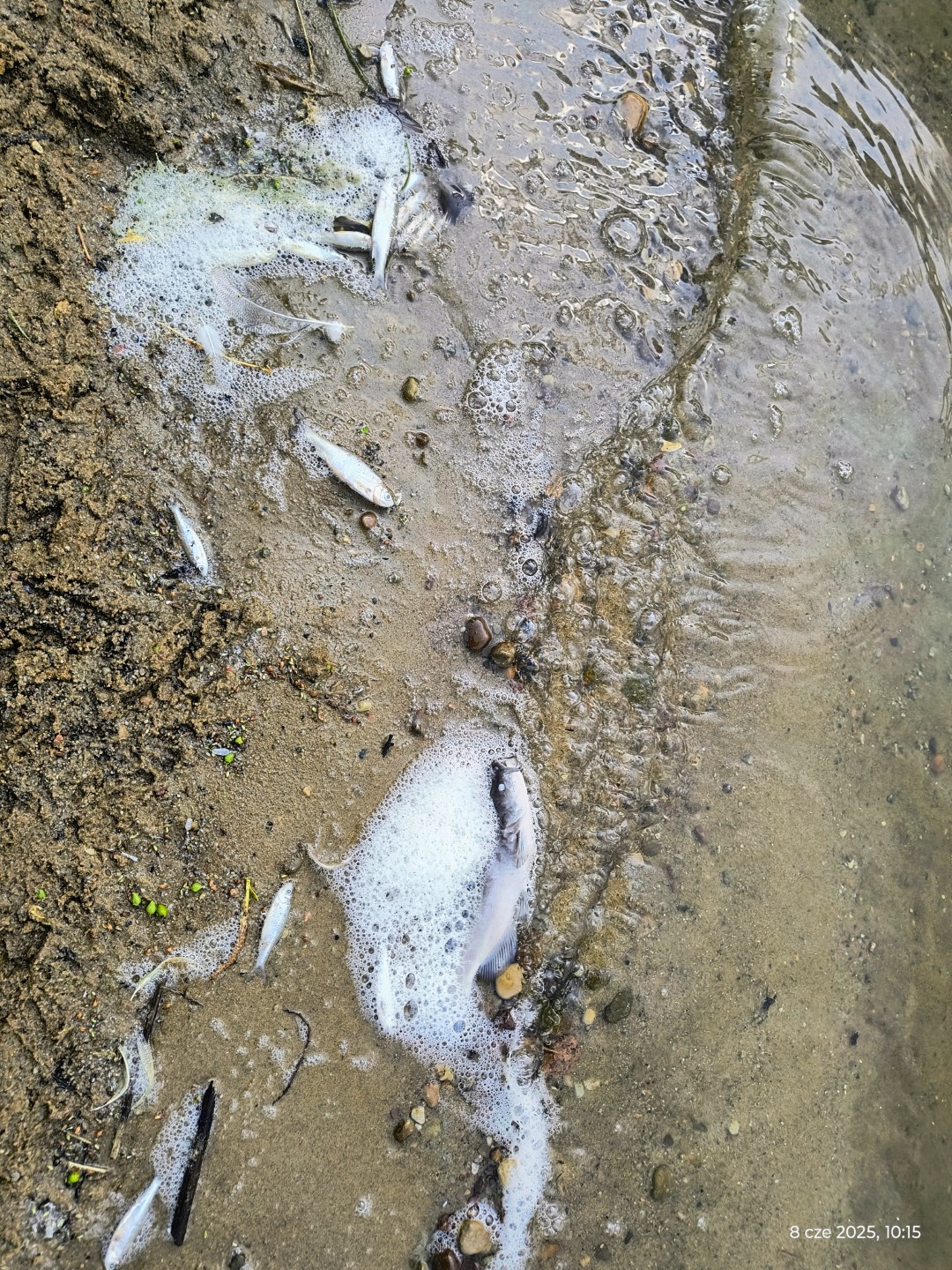 W związku z powyższym inspektorzy niezwłocznie udali się na wskazane miejsce, celem weryfikacji zgłoszenia. W toku prowadzonych czynności przesłuchano zarządzającego jeziorem, dokonano oględzin terenu i brzegu akwenu. Nie stwierdzono śladów odprowadzania zanieczyszczeń do jeziora ani też obcego zapachu wody. Potwierdzono obecność znacznej ilości śniętych ryb i raków.