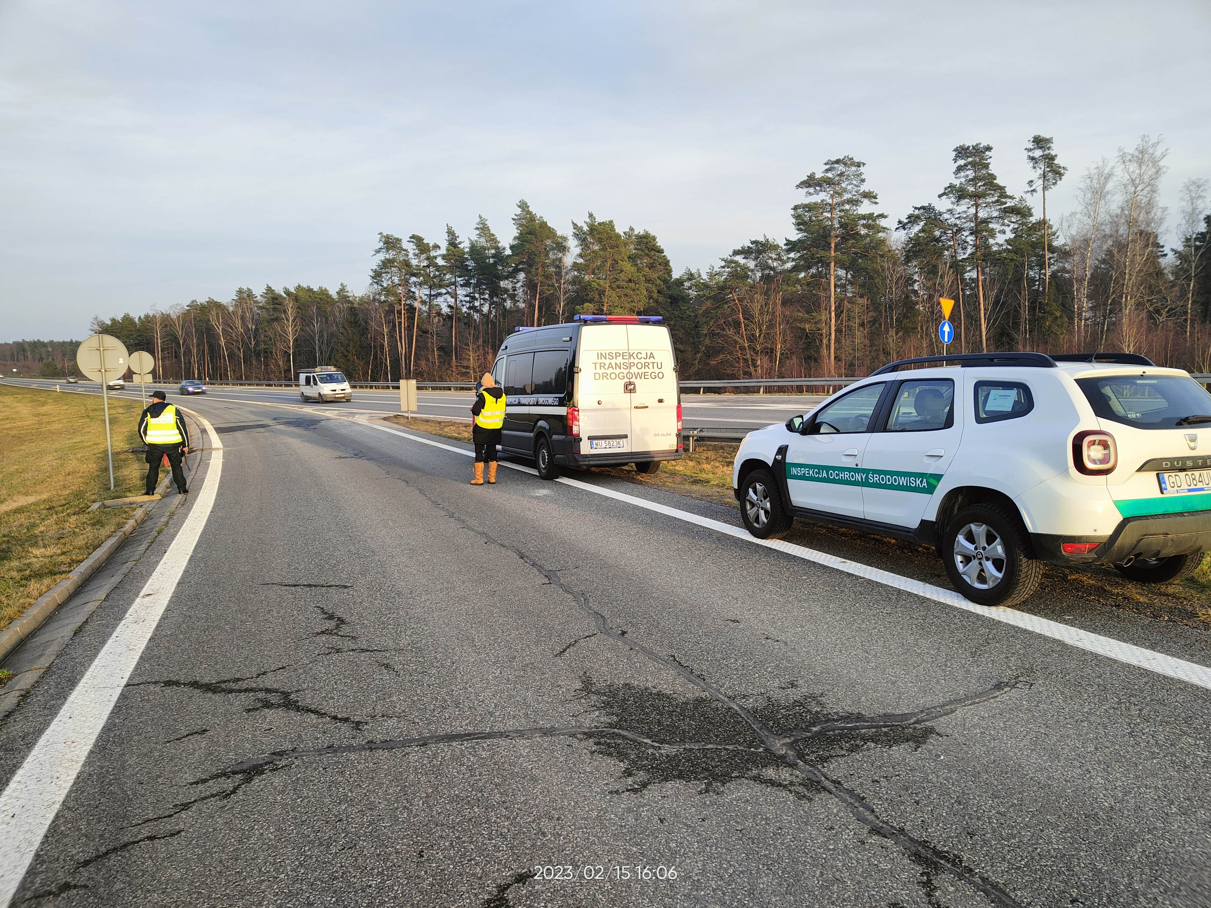15.02.2023 r. w godzinach wieczornych inspektorzy Delegatury w Słupsku przeprowadzili czynności na terenie powiatu słupskiego. W trakcie działań skontrolowano 5 transportów, w tym jeden międzynarodowy transport odpadów.