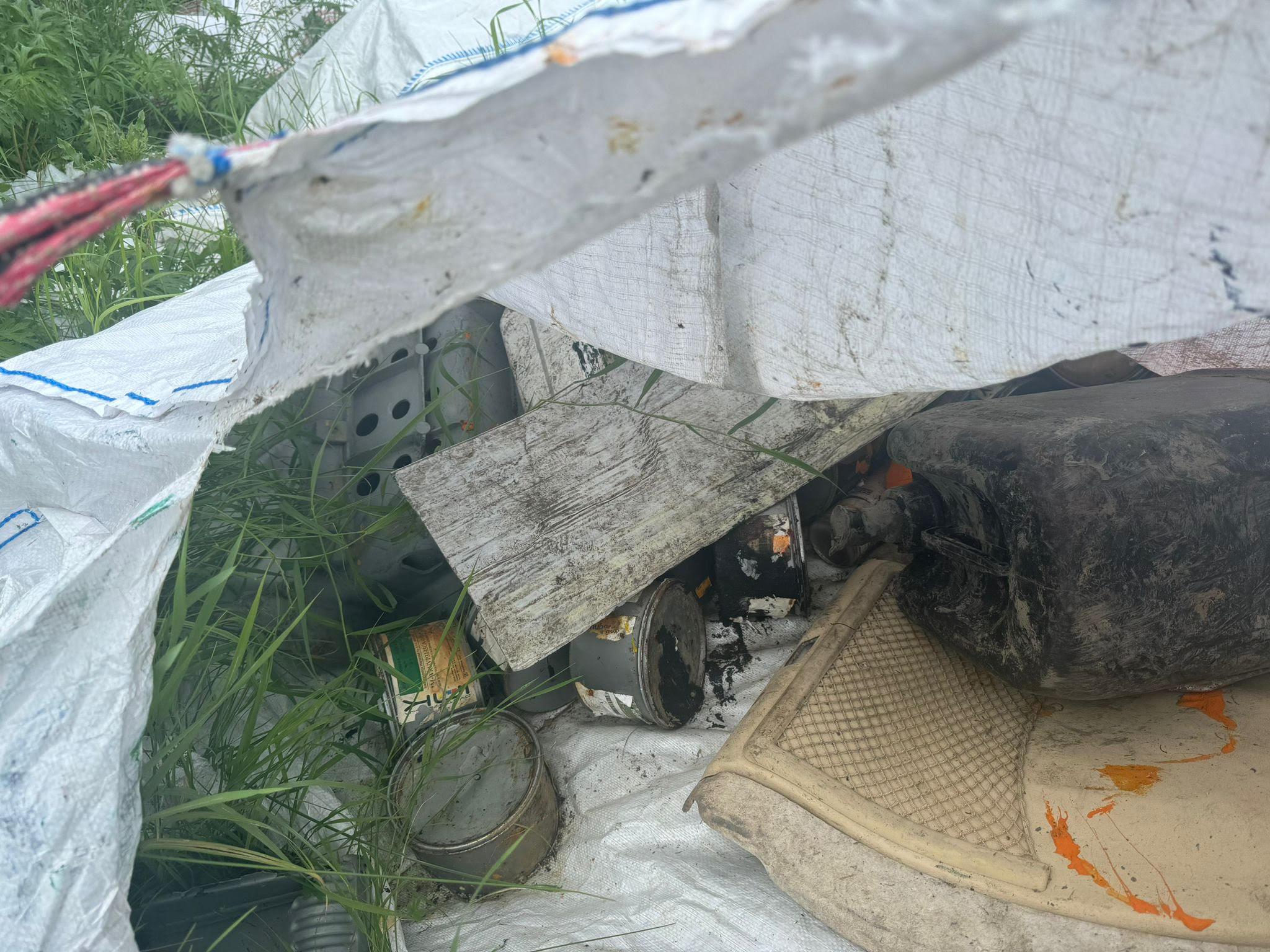Policjanci podczas sprawdzania tego terenu ujawnili również usypaną wzdłuż posesji około 20-metrową hałdę z gruzu, przy której znaleziono około stu zużytych opon.