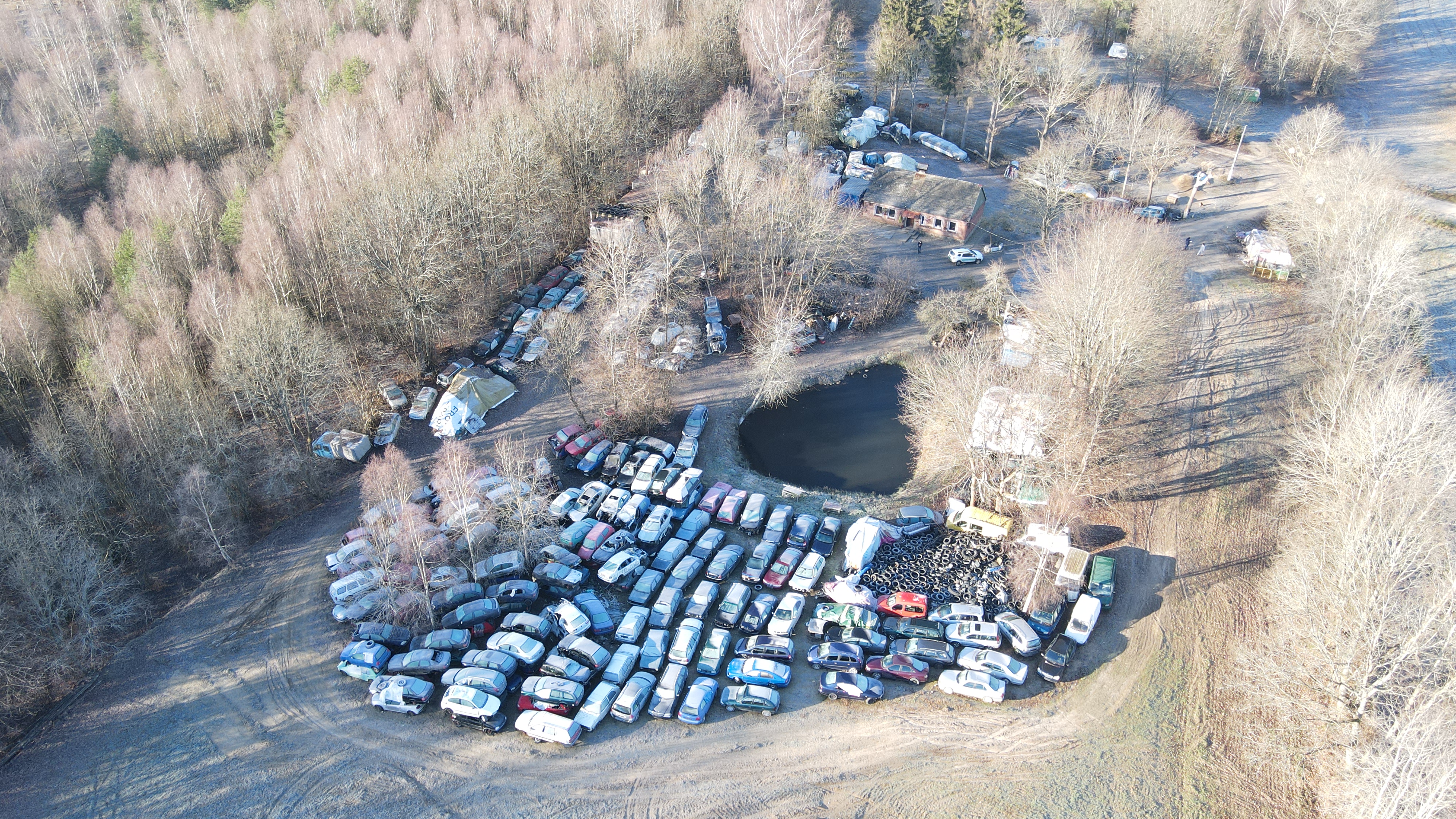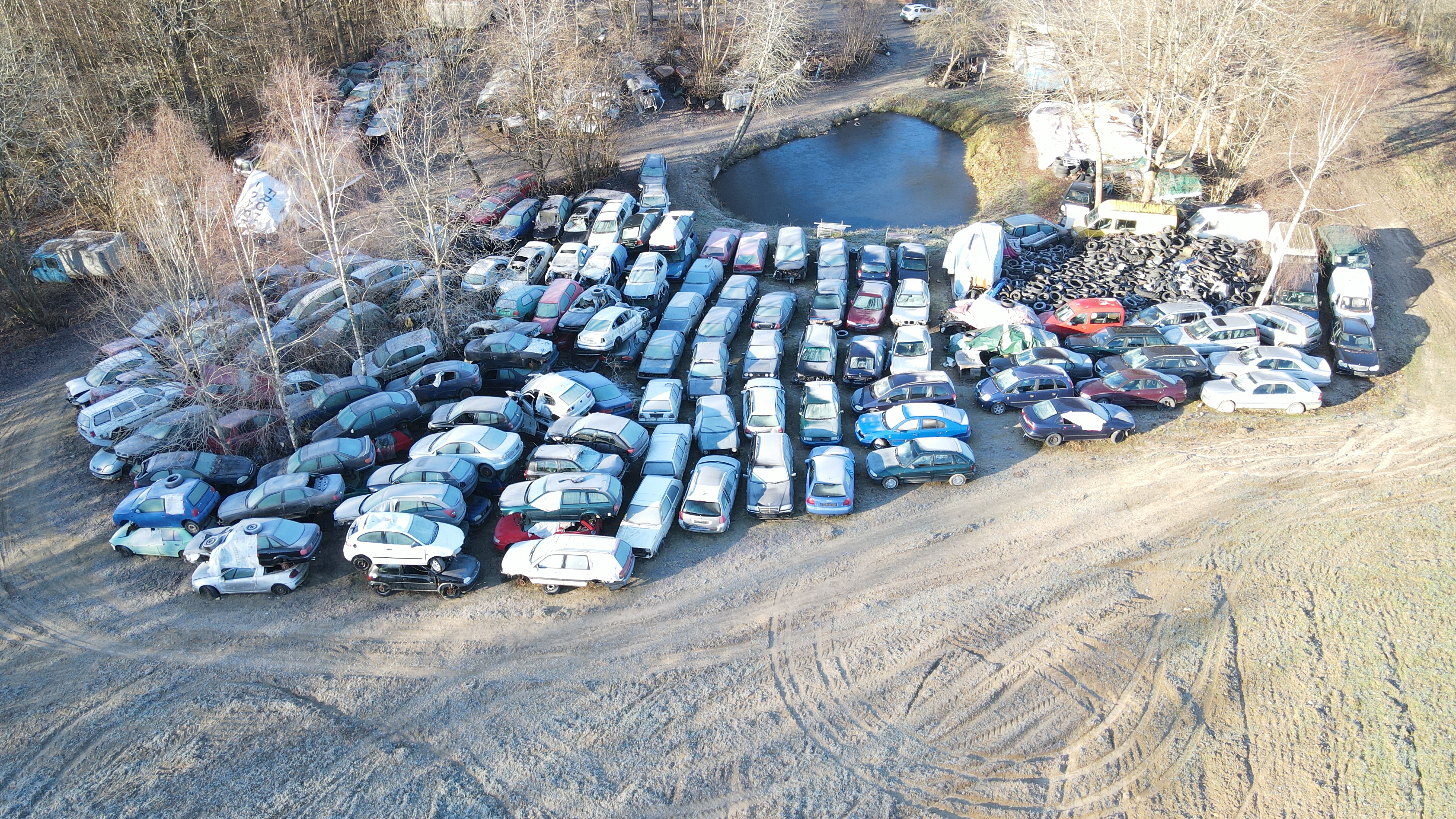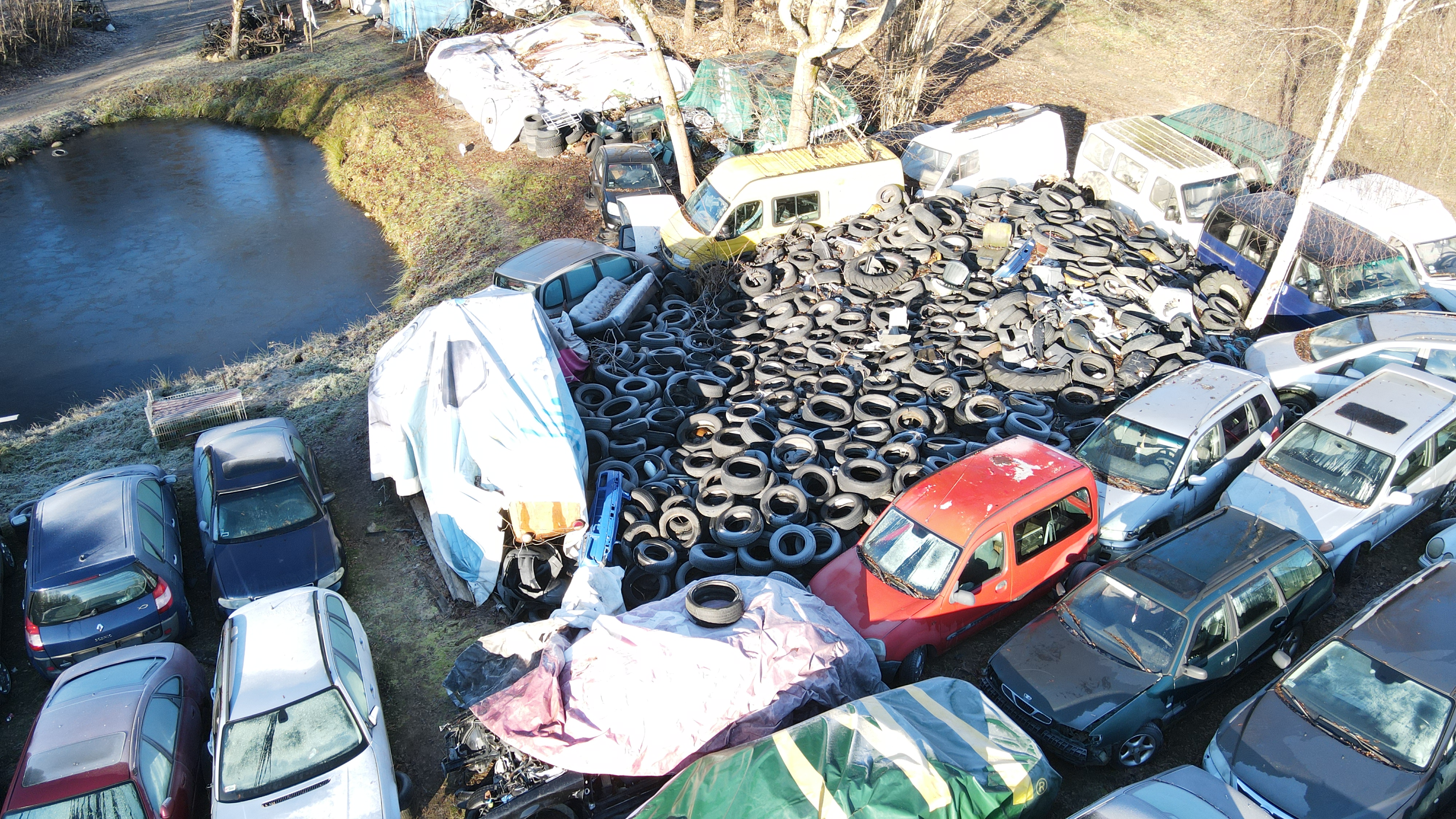 Inspektorzy Działu Zwalczania Przestępczości Środowiskowej Delegatura w Słupsku w ramach działań rozpoznawczych prowadzonych przy użyciu bezzałogowego statku powietrznego - drona - zidentyfikowali miejsce nielegalnego zbierania odpadów na terenie powiatu bytowskiego. Podczas czynności na stosunkowo niedużym terenie ujawniono odpady w postaci około 350 pojazdów wycofanych z eksploatacji oraz kilkuset zużytych opon.