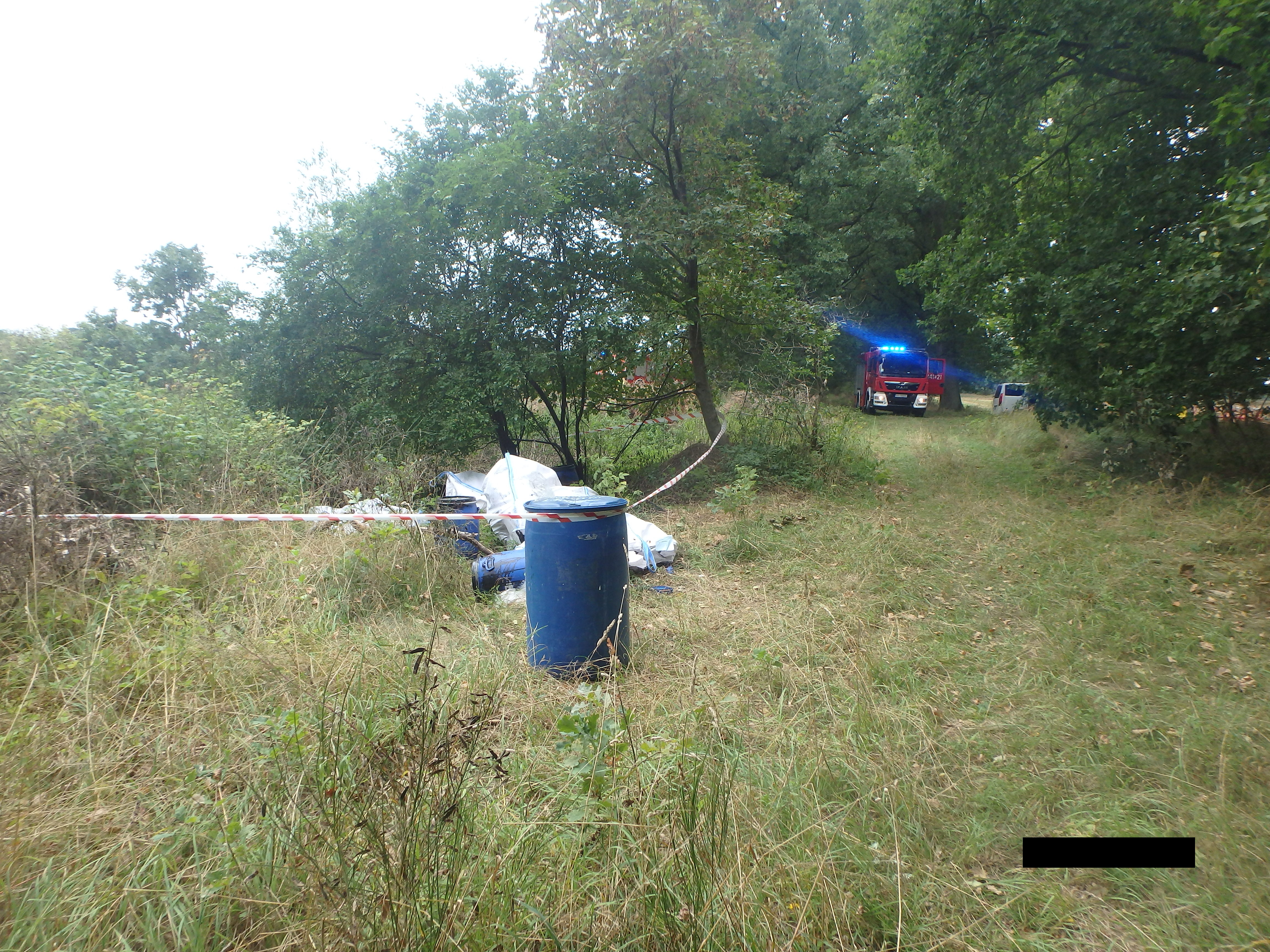 W trakcie czynności ustalono, że przy jednej z polnych dróg nieznany sprawca podrzucił łącznie szesnaście 50 l beczek wypełnionych czarną mazistą substancją. Odpady te zostały zgromadzone na powierzchni o wymiarach 8,5m x 3,1 m. W związku z powyższym zawiadomiono właściwe służby, tj. Państwową Straż Pożarną oraz Policję.