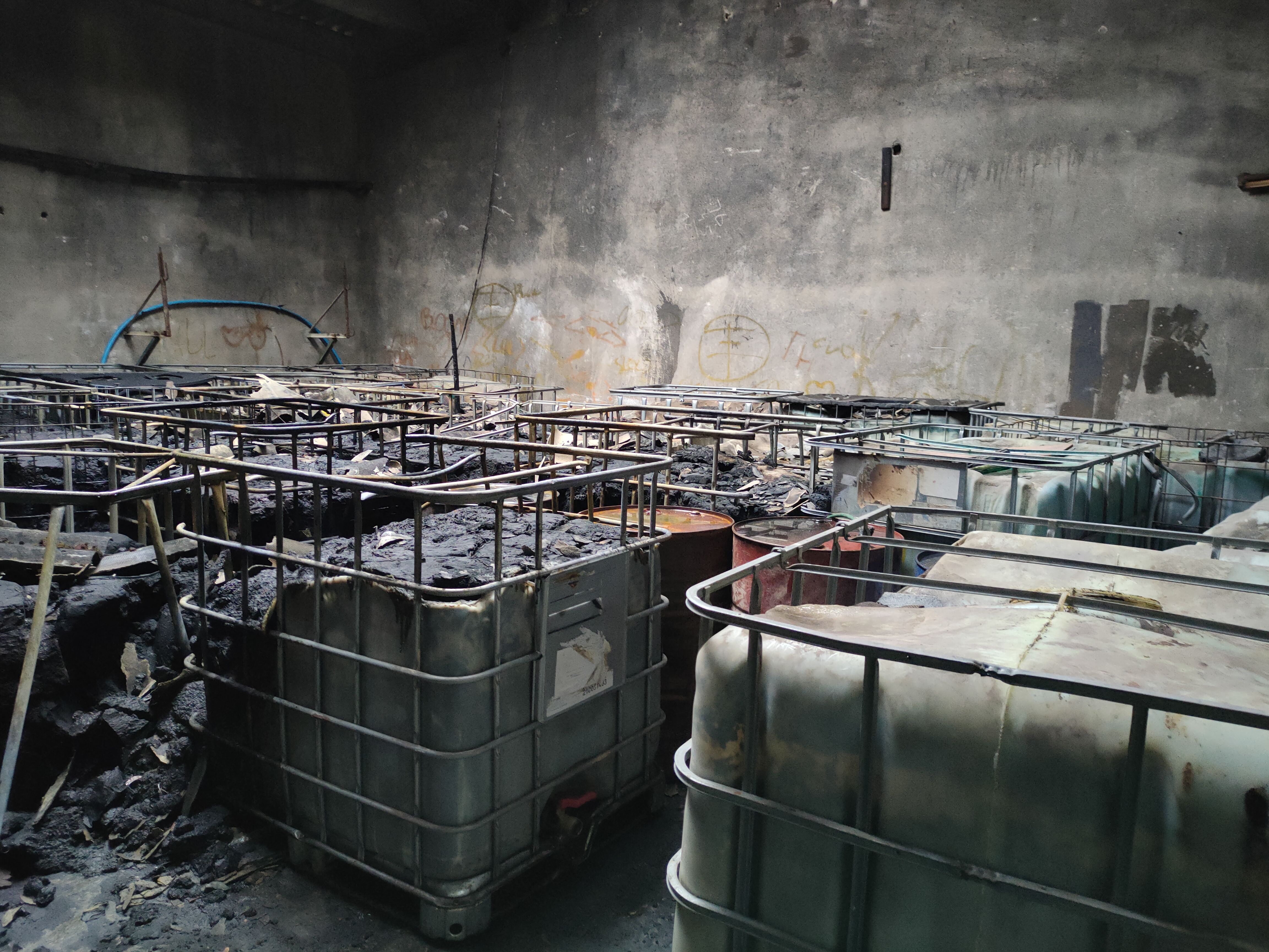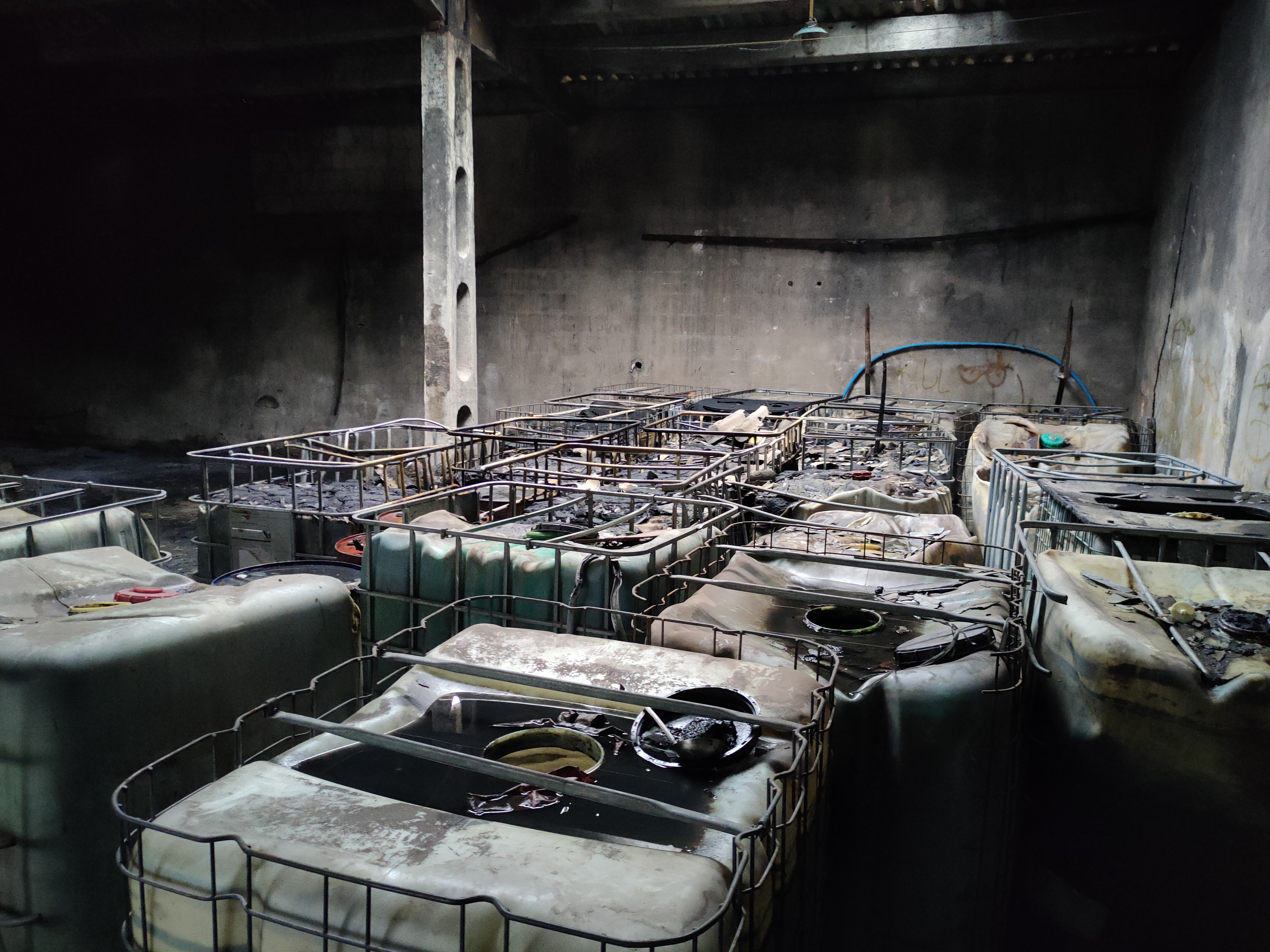 Stwierdzono, że paliły się pojemniki typu mauser z nieznaną substancją, które znajdowały się wewnątrz hali. Wstępne ustalenia wskazują, że nie doszło do zanieczyszczenia zagrażającego życiu lub zdrowiu człowieka.