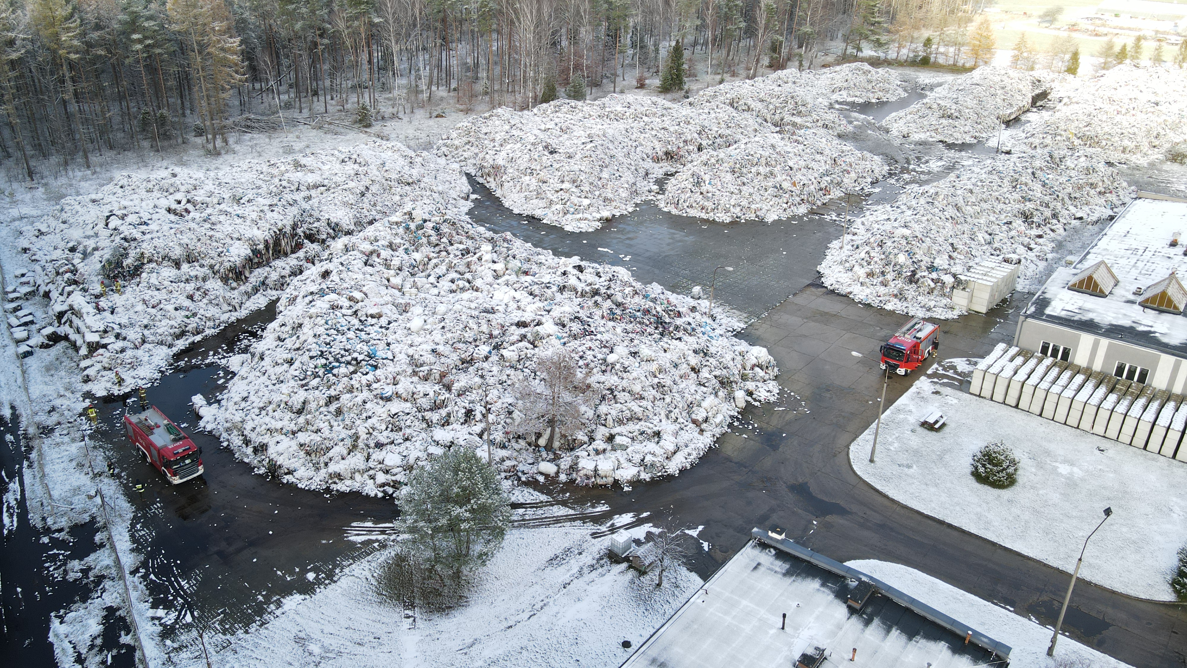 W dniu 18.11.2022 r. inspektorzy Delegatury w Słupsku Wojewódzkiego Inspektoratu Ochrony Środowiska w Gdańsku prowadzili czynności obserwacyjne terenu zgromadzonych odpadów tekstylnych w Kamieńcu za pomocą bezzałogowego statku powietrznego – drona. W trakcie czynności zauważyli dym wydobywający się z wnętrza jednej z pryzm odpadów, o czym niezwłocznie powiadomili Straż Pożarną oraz inne organy. Pożar został stłumiony w zarodku.