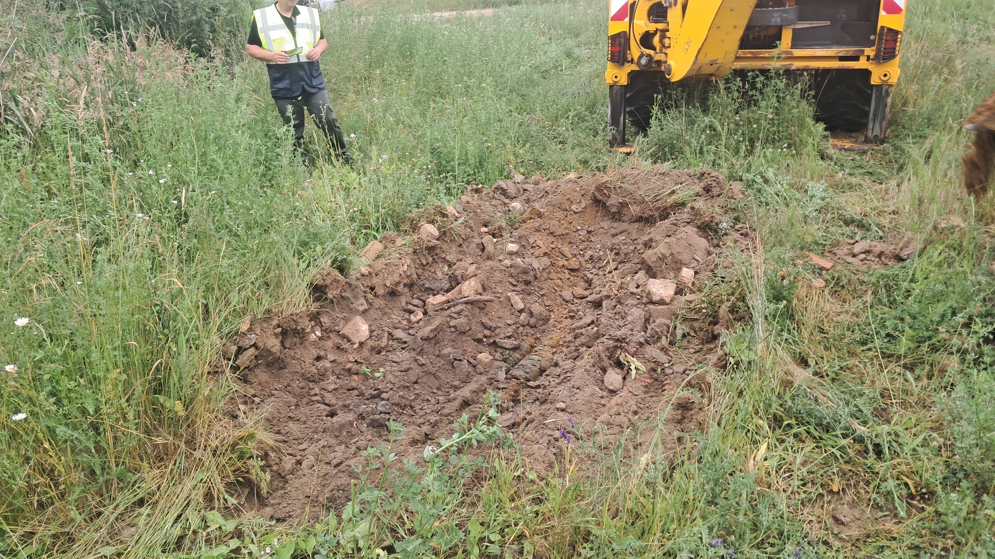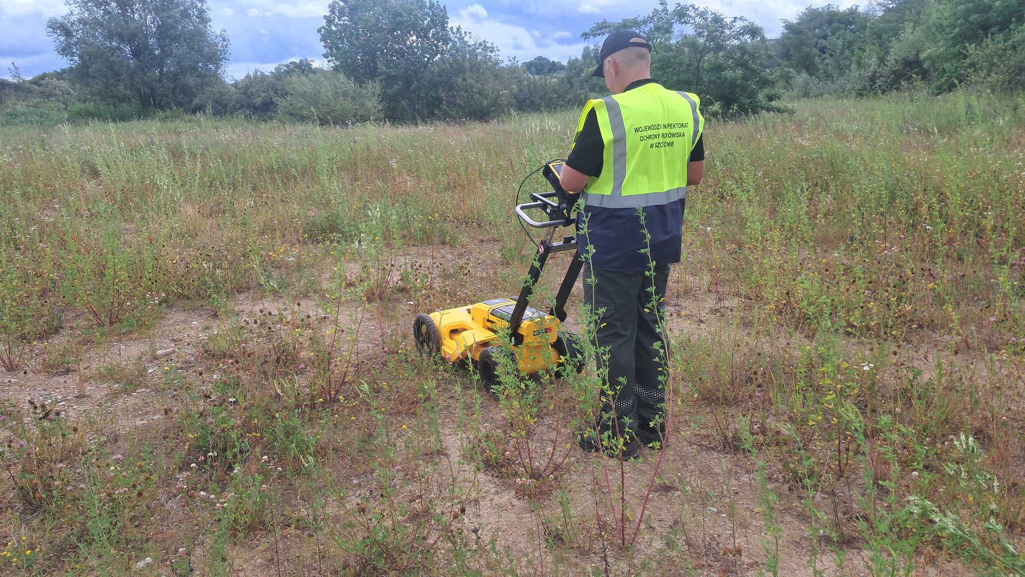 Inspektorzy z Gdańska i Szczecina wraz z przedstawicielami gminy skontrolowali zgodność gospodarki odpadami z posiadaną przez podmiot odpowiedzialny decyzją. Podczas czynności operator ze Szczecina wskazał za pomocą georadaru i wykrywacza metali miejsca na terenie rekultywowanej żwirowni, w których istniało prawdopodobieństwo zakopania odpadów niewymienionych w zezwoleniu. Celem weryfikacji wskazanych miejsc, koparką wykonano odkrywki.