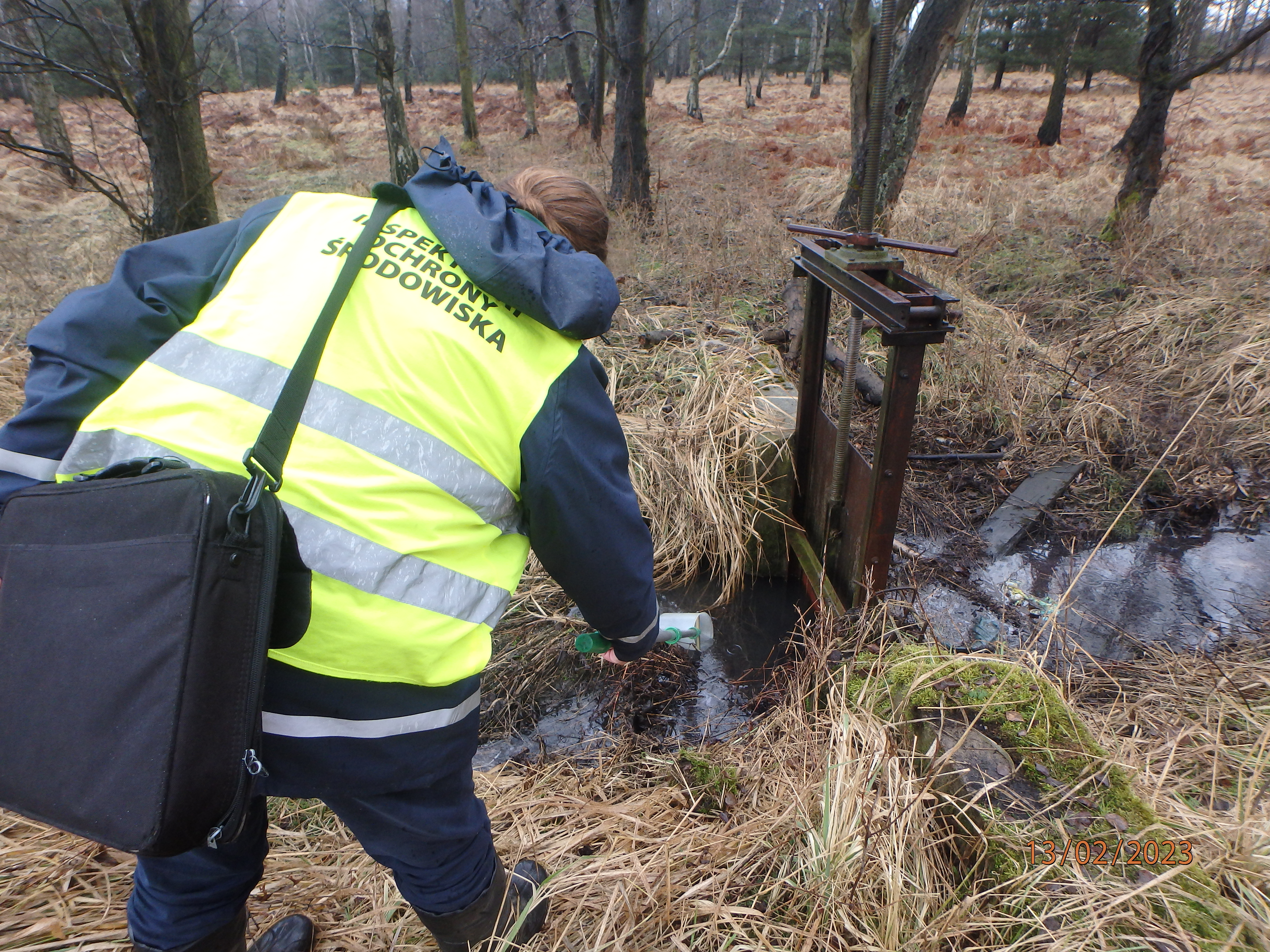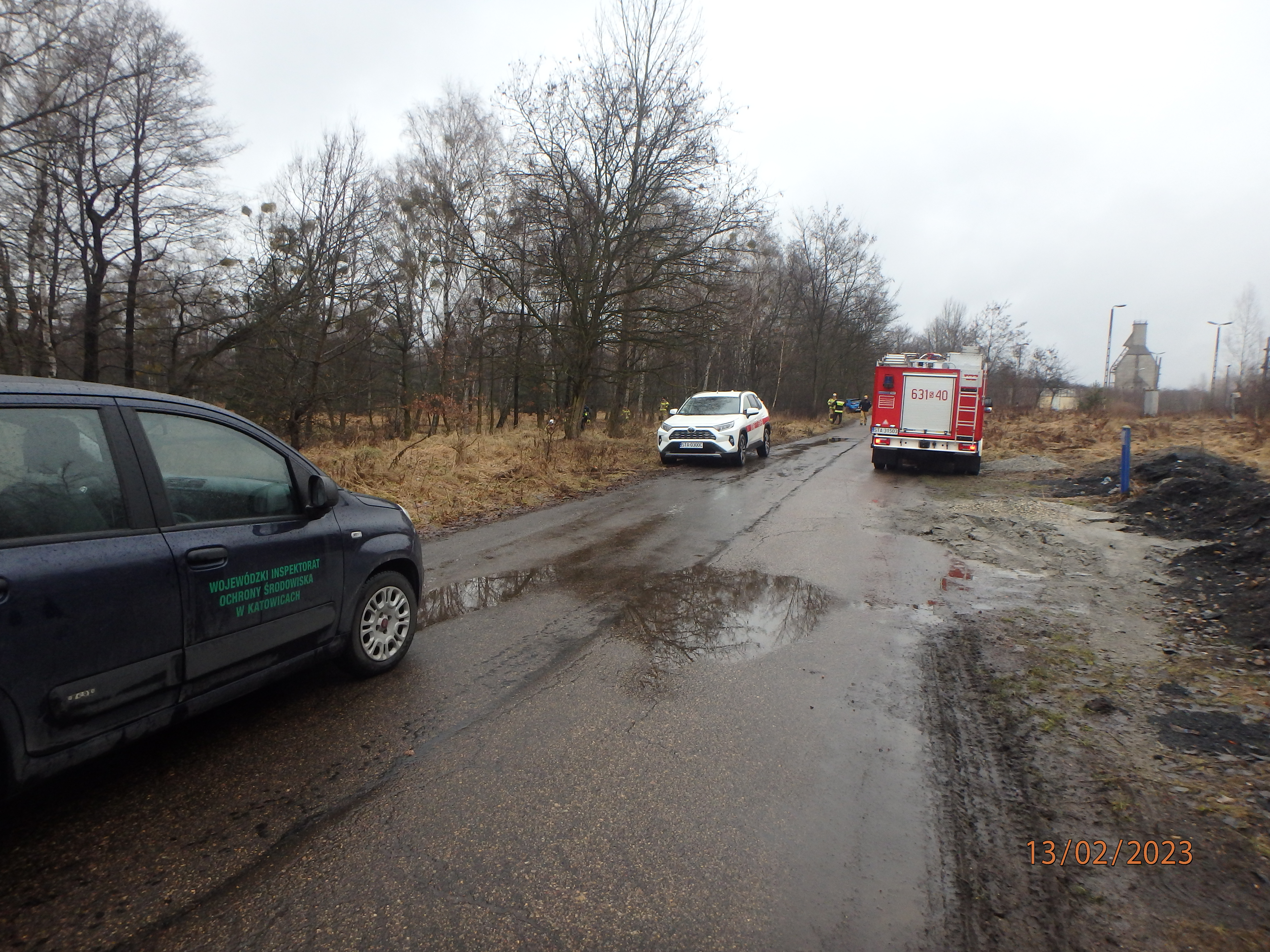 Przeprowadzone przez inspektorów oględziny terenu wykazały ponadto, że część substancji, która wyciekła z cysterny kolejowej, przedostała się kanalizacją do pobliskiego rowu odwadniającego, stanowiącego dopływ Potoku Pniowiec. W tej sytuacji obecni na miejscu zdarzenia strażacy z Komendy Powiatowej PSP Tarnowskie Góry ustawili w korycie rowu (poniżej wylotu z kanału odwaniającego tereny kolejowe) zastawki sorpcyjne i słomiane oraz kilkanaście zastawek z mat sorpcyjnych, żeby nie dopuścić do rozprzestrzeniania się zanieczyszczenia. Aby określić zasięg w jakim uwolniona substancja wpłynęła na wody rowu odwadniającego, inspektorzy WIOŚ prowadząc działania 13 i 14 lutego 2023 r. pobrali próby do badań analitycznych. Ich wyniki nie są jeszcze znane. Akcja usuwania zanieczyszczeń zatrzymanych na ustawionych w tym celu zastawkach nadal jest w toku. Działania prowadzone przez jednostki KP PSP w Tarnowskich Górach oraz służby Zakładu Linii Kolejowych w Tarnowskich Górach PKP Polskie Linie Kolejowe S.A. monitorowane są przez inspektorów WIOŚ.