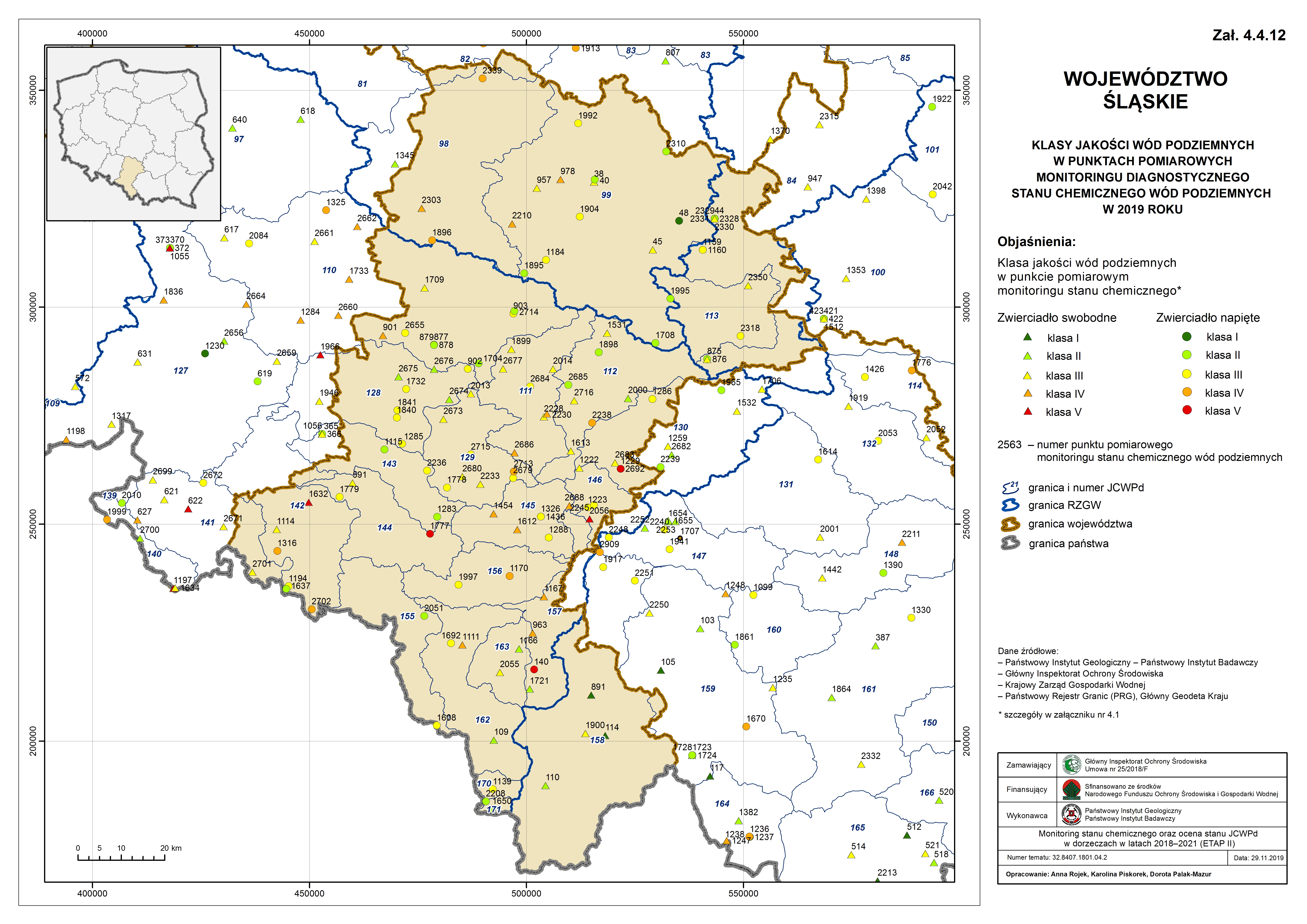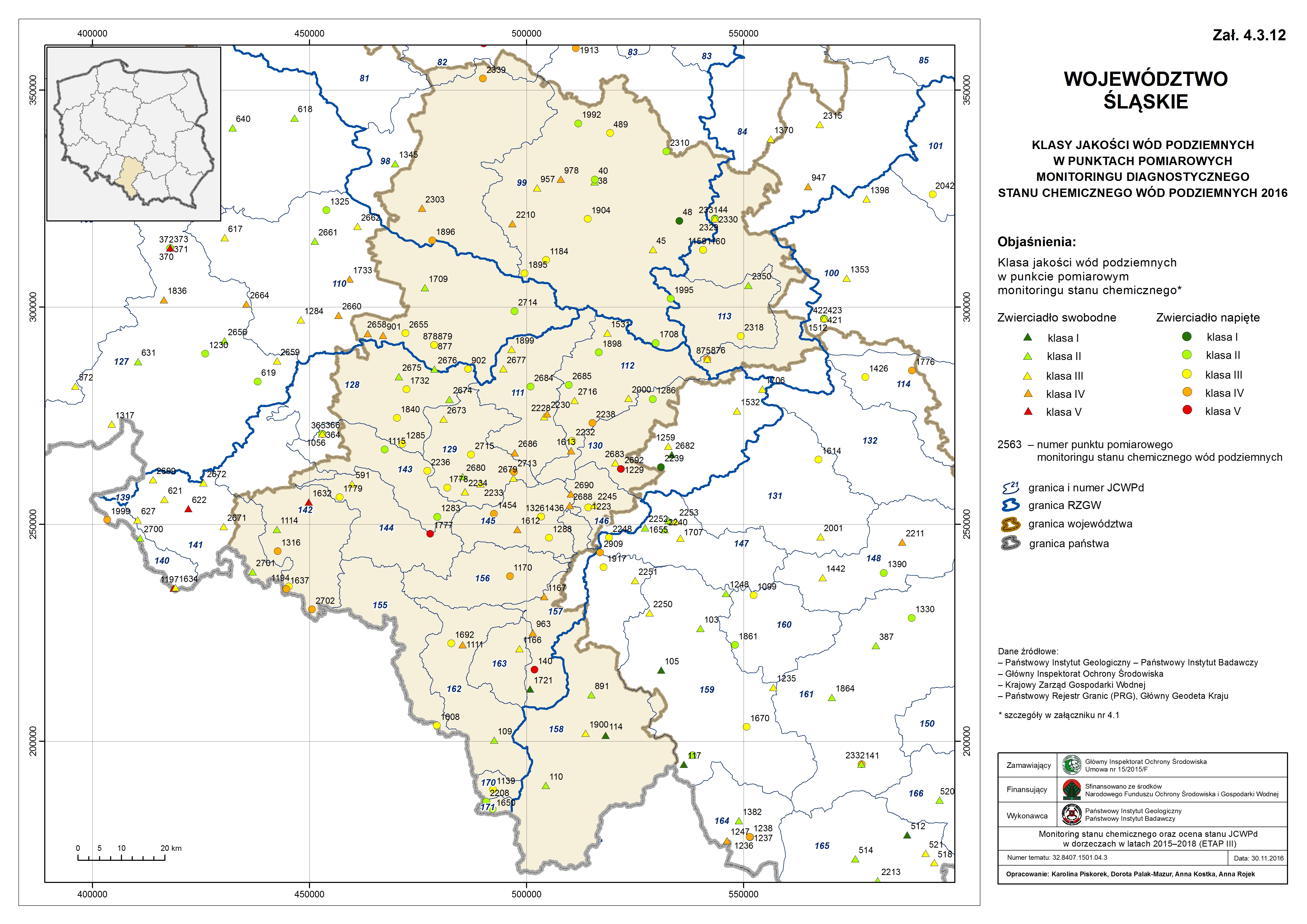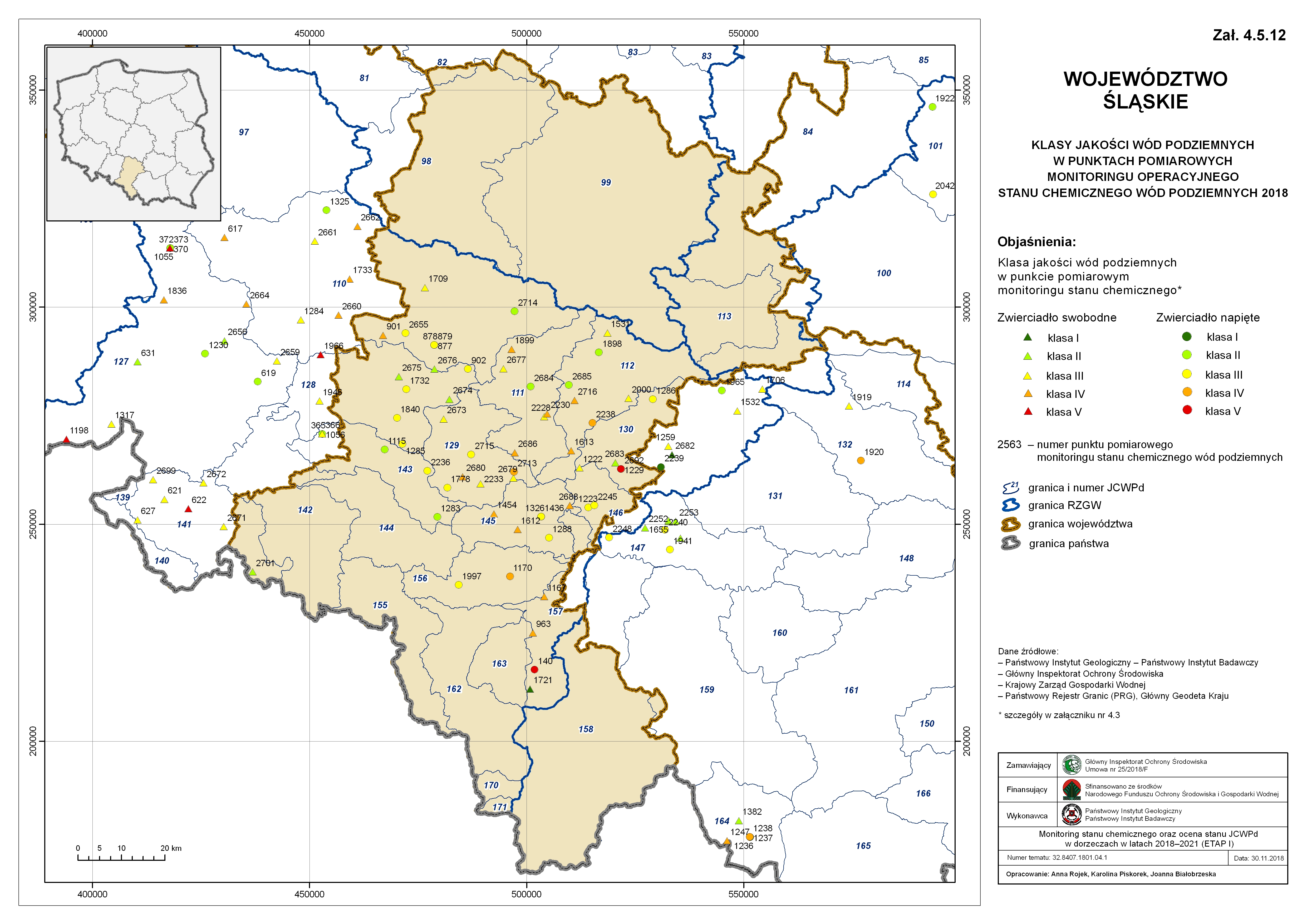 Lokalizacja i klasy jakości wód podziemnych w punktach pomiarowych sieci krajowej monitoringu operacyjnego stanu chemicznego wód podziemnych w 2018 roku (badania wykonane na zlecenie GIOŚ przez Państwowy Instytut Geologiczny - Państwowy Instytut Badawczy)klasy2018.jpg 3.81MB Klasyfikacja i wyniki wskaźników nieorganicznych w punktach pomiarowych przeprowadzonych w 2018 roku w sieci krajowej monitoringu wód podziemnych (badania wykonane na zlecenie GIOŚ przez Państwowy Instytut Geologiczny - Państwowy Instytut Badawczy)