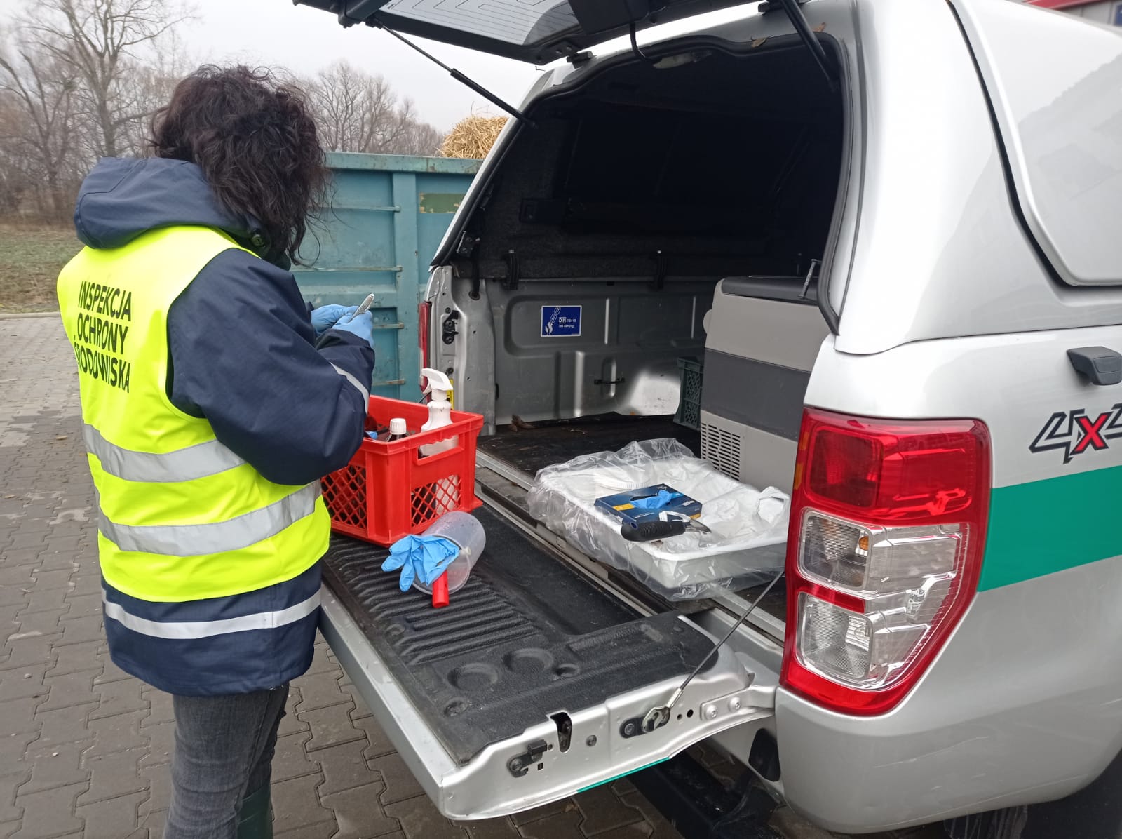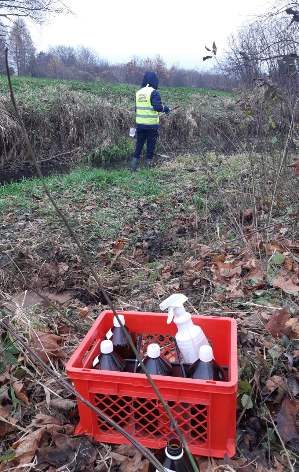 Inspektorzy prowadzą działania w terenie w związku z zanieczyszczeniem terenów rolnych i potoku Bładnica substancjami ropopochodnymi. To efekt pożaru w hali produkcyjnej w Ustroniu, który wybuchł w środę 30 listopada 2022 r.
