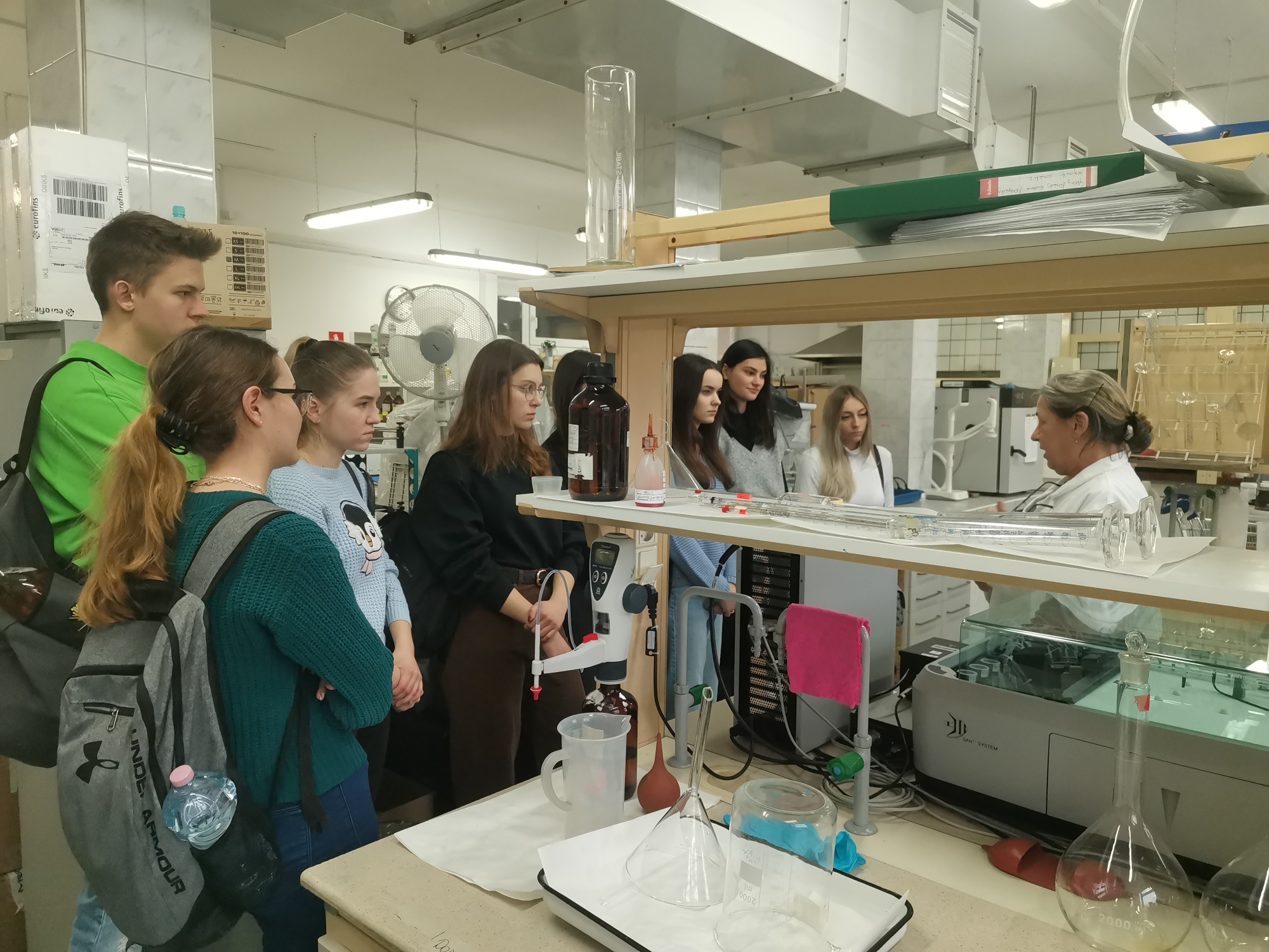Na początku studenci mieli okazję zapoznać się pracą Centralnego Laboratorium Badawczego Oddziału w Opolu. Pani Kierownik przedstawiła zasady pracy, rodzaje i specyfikę badań wykonywanych przez laboratorium oraz wskazała system monitoringu środowiska prowadzony na terenie Opolszczyzny.