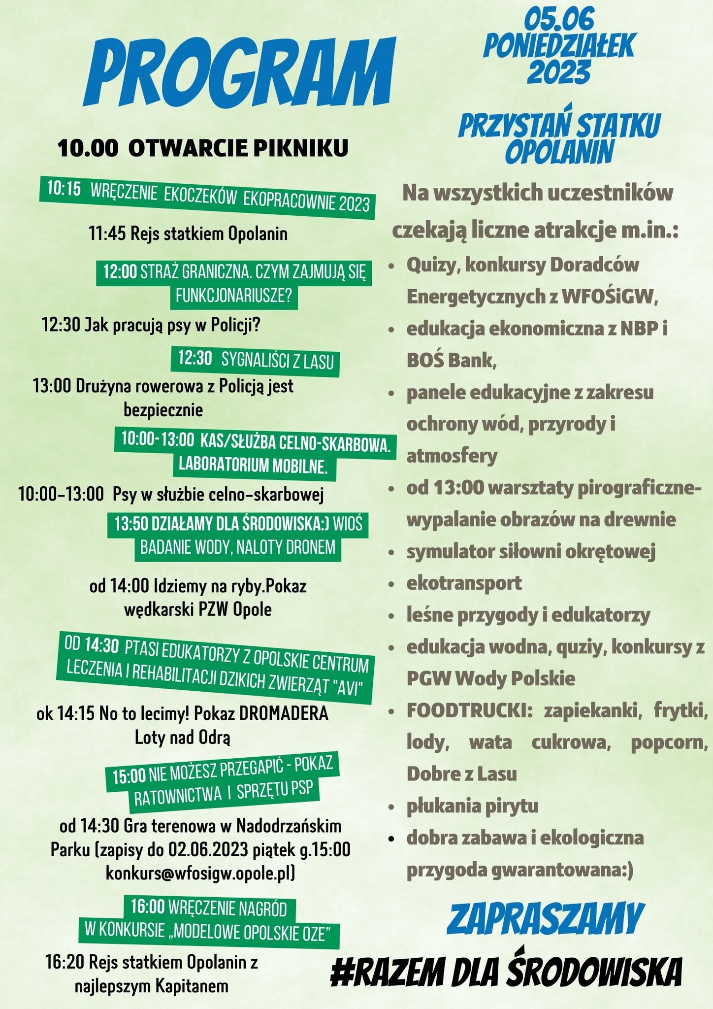 Już 5 czerwca zapraszamy wszystkich zainteresowanych na Piknik z okazji Światowego Dnia Ochrony Środowiska organizowany przez Wojewódzki Fundusz Ochrony Środowiska i Gospodarki Wodnej w Opolu wraz z partnerami.