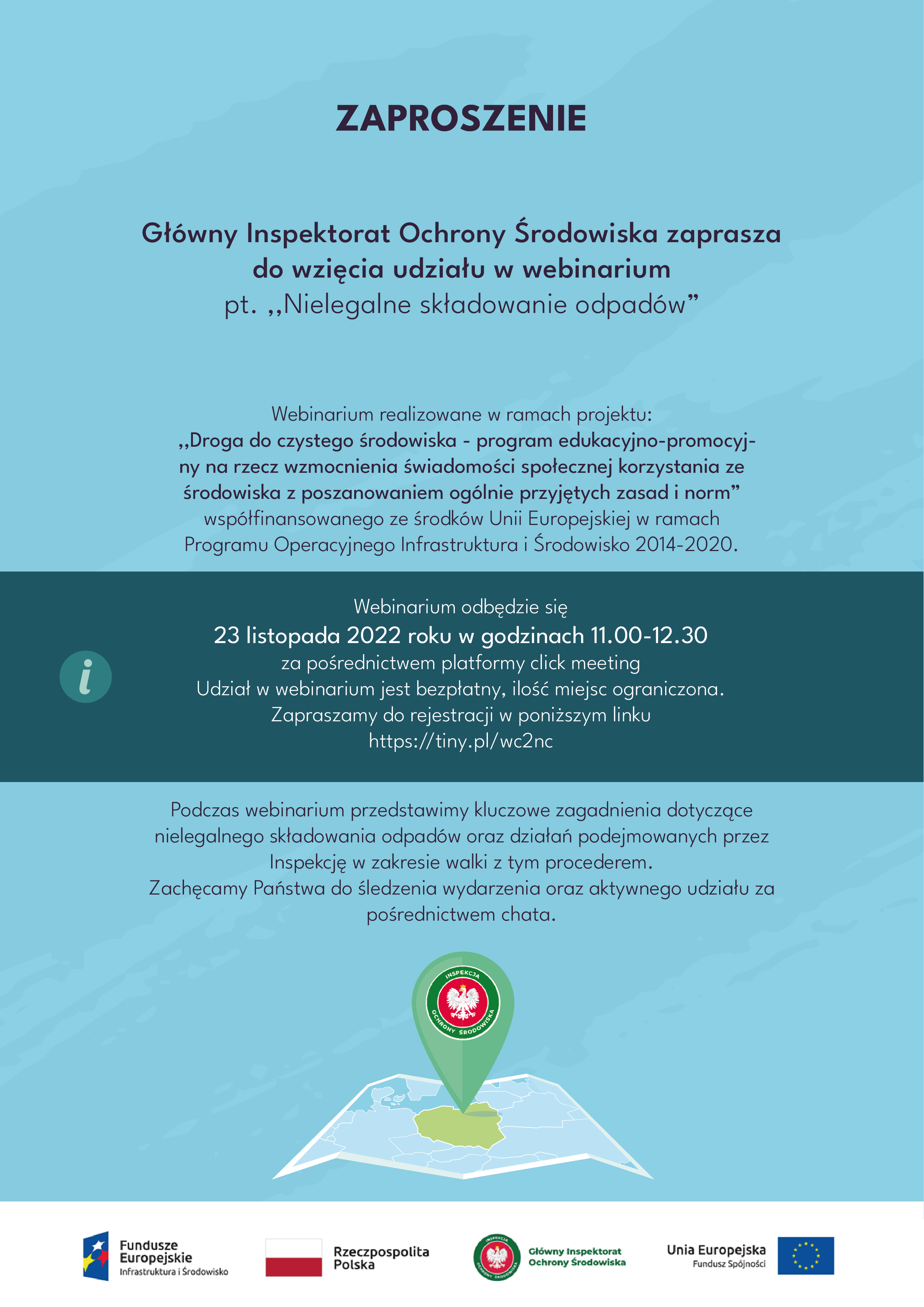 Serdecznie zapraszamy do wzięcia udziału w webinarium pt. "Nielegalne składowanie odpadów", organizowanym przez Główny Inspektorat Ochrony Środowiska.