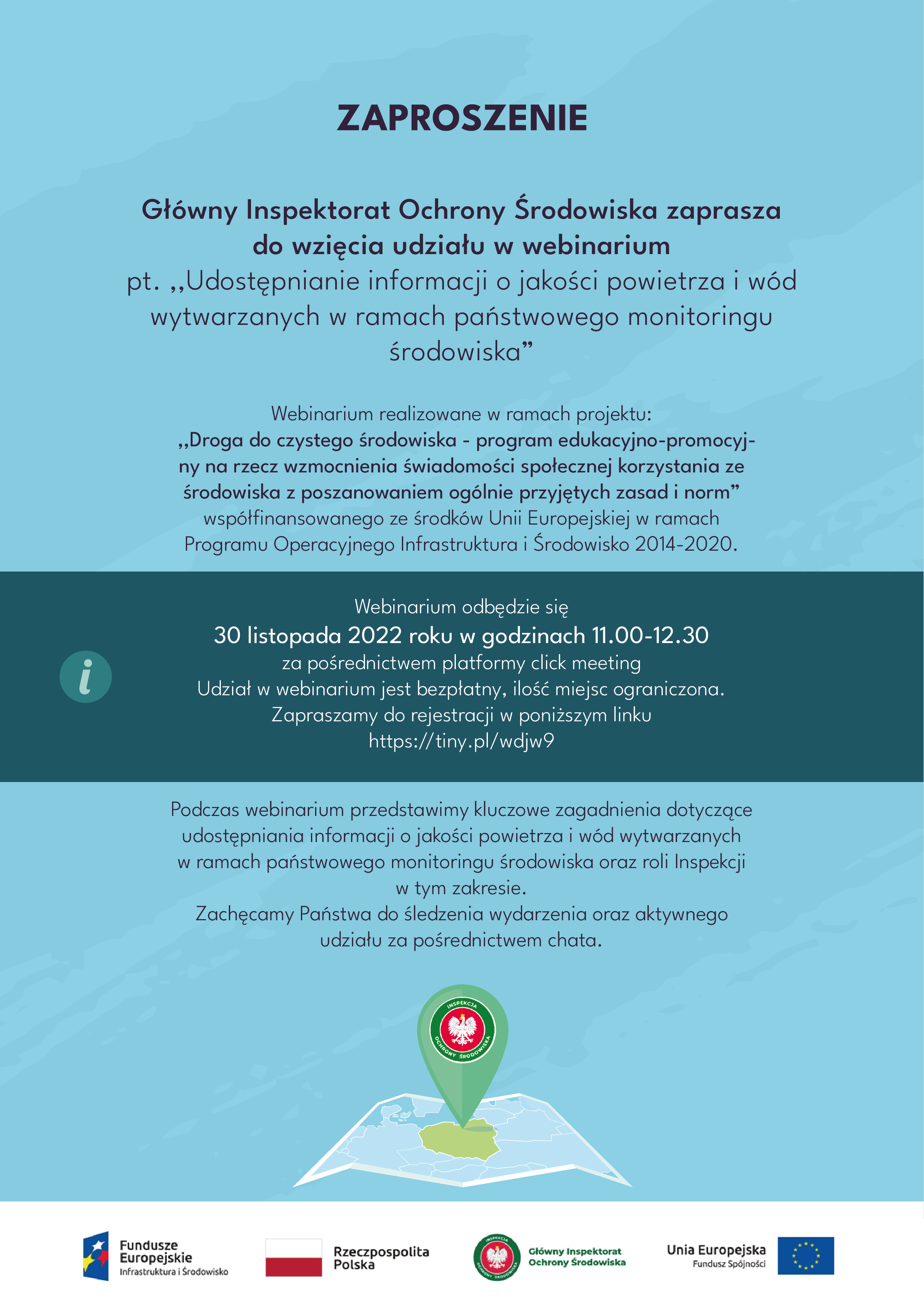 Serdecznie zapraszamy do wzięcia udziału w webinarium pt. . ,,Udostępnianie informacji o jakości powietrza i wód wytwarzanych
