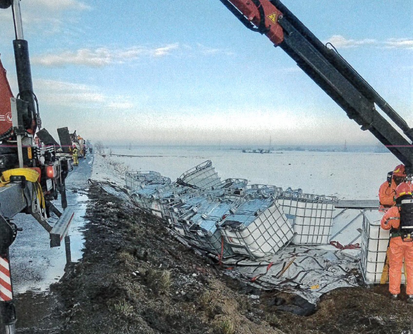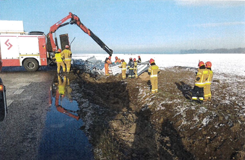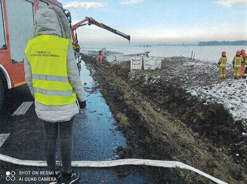 W dniu 27.11.2021 r. do Wojewódzkiego Inspektoratu Ochrony Środowiska w Opolu wpłynęła informacja dotycząca zdarzenia drogowego - wypadku samochodu ciężarowego przewożącego niebezpieczne substancje chemiczne, na wysokości drogi wojewódzkiej DW 401 we wsi Skoroszyce gm. Skoroszyce kierunek Nysa – Grodków. W wyniku przewrócenia się samochodu ciężarowego przewożącego 21 zbiorników DPPL wypełnionych niebezpiecznymi substancjami chemicznymi doszło do uszkodzenia 3 zbiorników, natomiast rozszczelnieniu uległy 2 z nich. W trakcie prowadzenia czynności rozpoznawczych oraz późniejszych czynności wyjaśniających ustalono, że sprawca zdarzenia posiadał wymagane listy przewozowe, a w pojeździe ciężarowym znajdowały się substancje chemiczne o następujących nazwach handlowych: