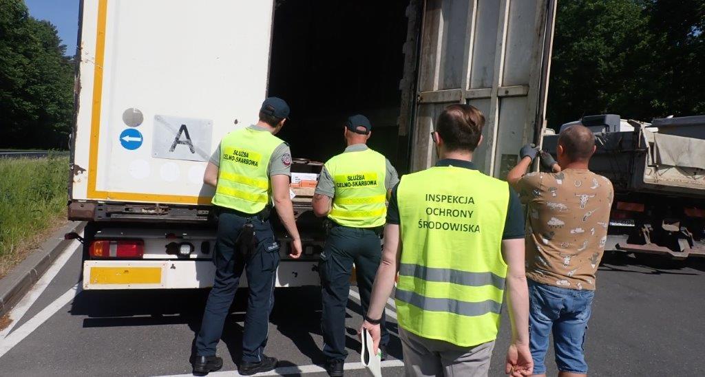 Inspektorzy WIOŚ w Rzeszowie wraz z funkcjonariuszami Inspekcji Transportu Drogowego w Rzeszowie oraz Krajowej Administracji Skarbowej w dniu 22.05.2024 r. uczestniczyli w kontroli drogowej transportu odpadów w m. Styków. Kontrolę przeprowadzono w ramach akcji „STOP nielegalnym odpadom 2024”, jak również pod kątem wprowadzania do Sytemu Elektronicznej Notyfikacji Transportów (SENT) odpadów objętych procedurą przywozu lub tranzytu, zgodnie z rozporządzeniem UE 2024/1157.