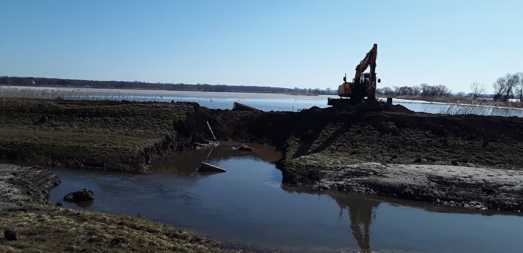 Podczas ponownych oględzin przeprowadzonych w dniu 09.03.2026 r. stwierdzono, że grobla na stawie została zabezpieczona i woda nie przedostawała się ze stawu na pobliskie grunty rolne. Gospodarstwo Rybackie Starzawa jest w trakcie prac związanych z odtworzeniem grobli.