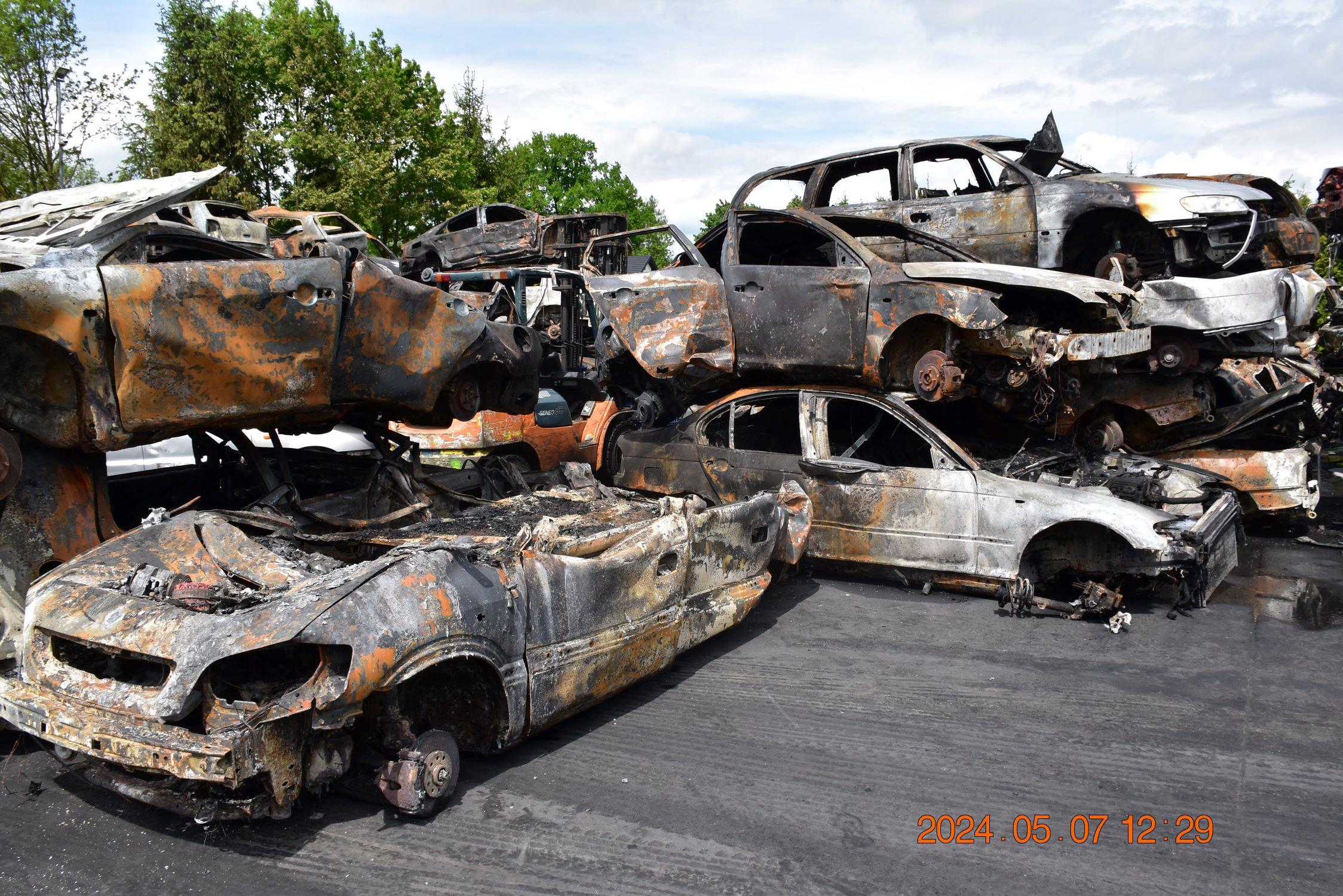 W związku z pożarem w stacji demontażu pojazdów w m. Malinie, gm. Tuszów Narodowy, w dniu 7.05.2024 r. inspektorzy WIOŚ w Rzeszowie niezwłocznie udali się na miejsce celem rozpoznania sytuacji. Na miejscu stwierdzono, że spaleniu uległy odpady pojazdów wycofanych z eksploatacji magazynowane w sektorze przeznaczonym na pojazdy po wstępnym demontażu, pozbawione elementów niebezpiecznych. Ustalono, że wytworzone w wyniku akcji gaśniczej ścieki z terenu utwardzonego, na którym magazynowane były odpady, skierowane zostały do zbiornika bezodpływowego.