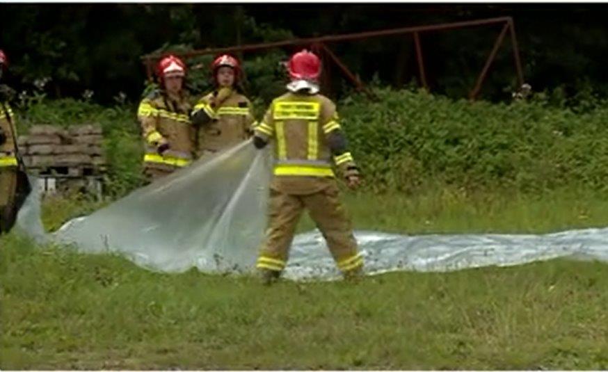 Podczas oględzin terenu w Przewrotnem przeprowadzonych w lipcu 2023 r., na miejsce przybyła Państwowa Straż Pożarna, która usunęła część odpadów.