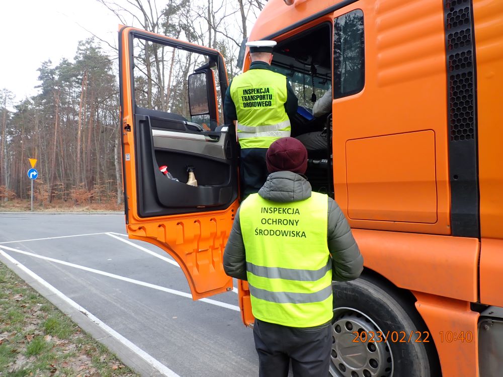W dniu 22.02.2023 r. inspektorzy WIOŚ w Rzeszowie z funkcjonariuszami Krajowej Administracji Skarbowej, Inspekcji Transportu Drogowego oraz policji, uczestniczyli w kontroli drogowej transportu odpadów w m. Styków.