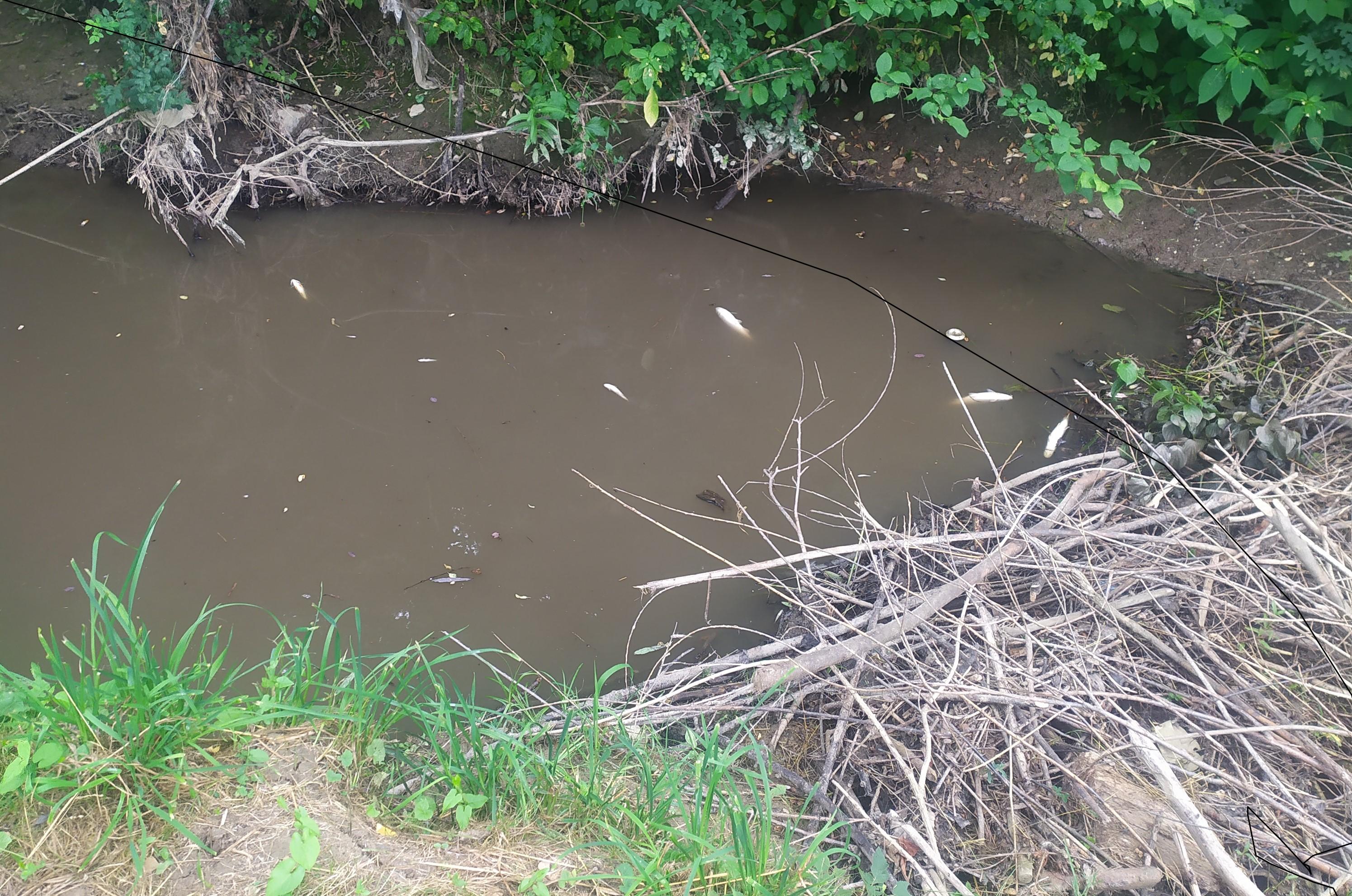 Oględzinom poddany został odcinek ok. 1,5 km w miejscu powstania zanieczyszczenia. Na całym odcinku stwierdzono obecność pojedynczych śniętych ryb, wyczuwalny był zapach gnojówki lub gnojowicy. Woda potoku na tym odcinku miała brunatne zabarwienie i dużą mętność. Stwierdzono również bardzo mały przepływ wody.