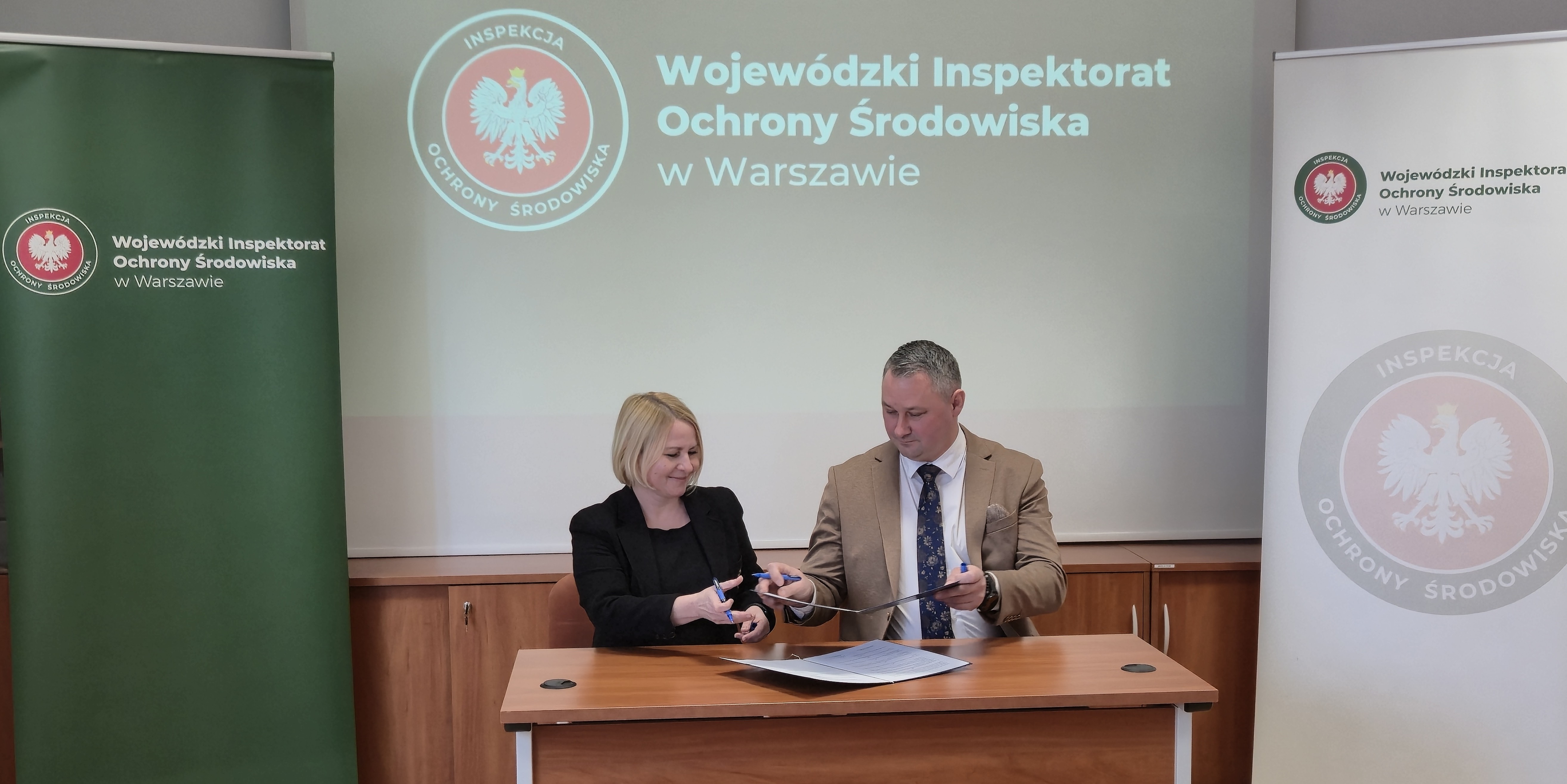 Mazowiecki Wojewódzki Inspektor Ochrony Środowiska Krzysztof Cząstkiewicz i Dyrektor Okręgowego Urzędu Górniczego w Warszawie Jolanta Pomorska podpisali porozumienie. Jego zakres to wymiana informacji i współdziałanie w związku z kontrolami przestrzegania przez przedsiębiorców przepisów dotyczących ochrony środowiska.