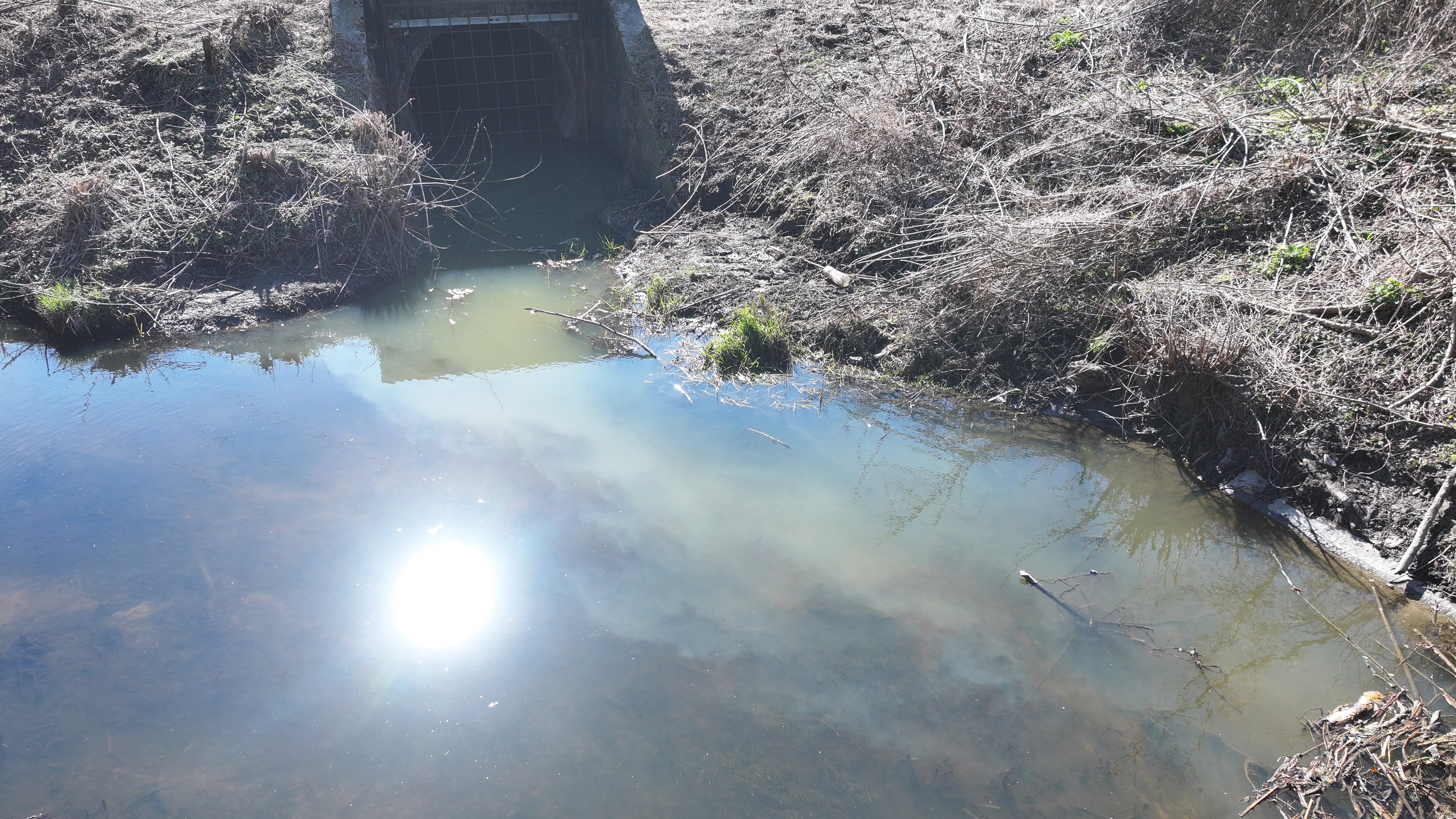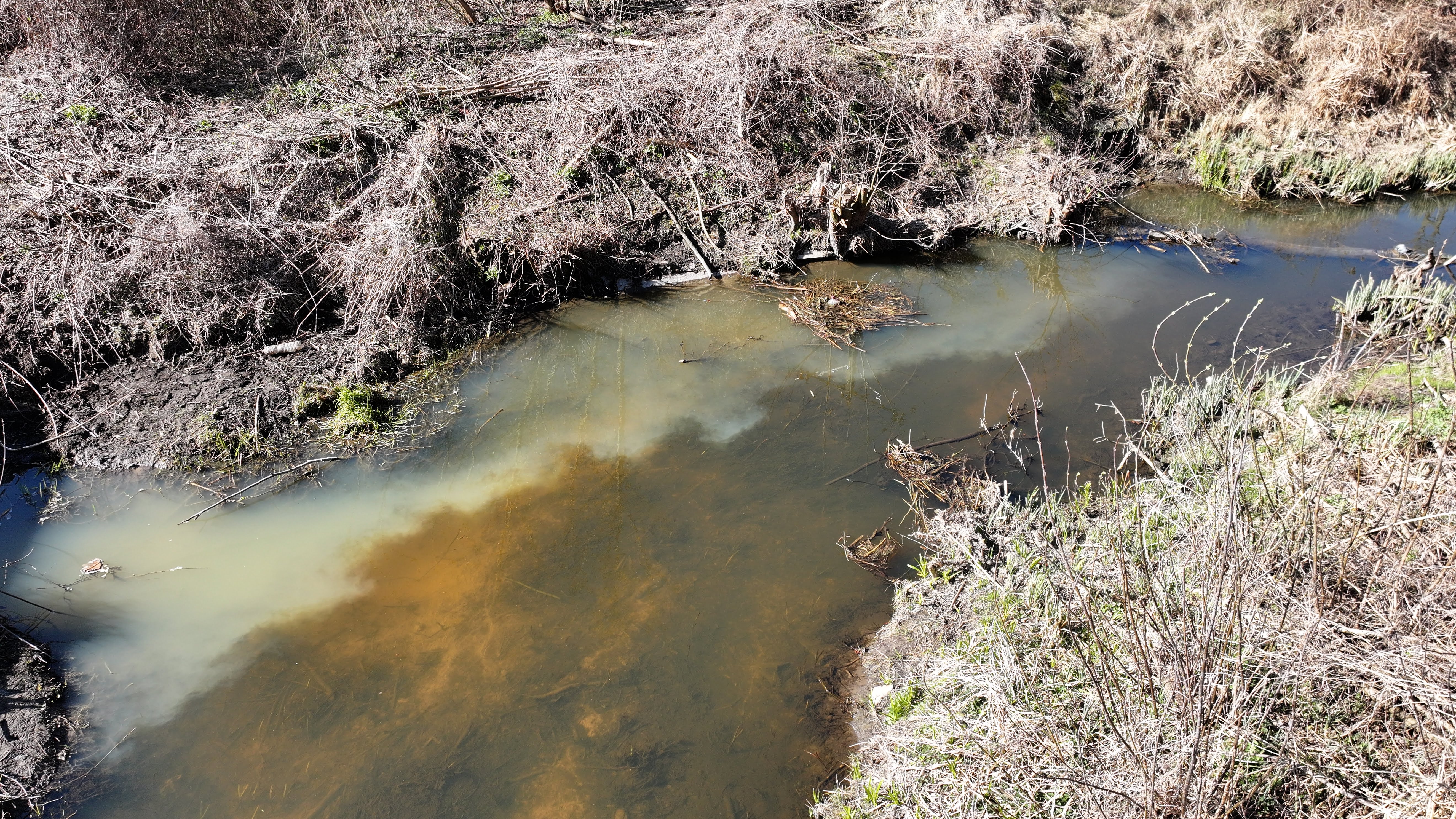 Podczas interwencji inspektorzy oraz funkcjonariusze dokonali oględzin koryta cieku oraz przyległego terenu w celu zlokalizowania źródła potencjalnego zanieczyszczenia. Ustalili, że zanieczyszczenie pochodzi z kolektora wód deszczowych – na odcinku około 10 m od ujścia kolektora deszczowego wypływająca z niego woda ma białe zabarwienie. Ponieważ przepływ wody był znikomy, zanieczyszczenie nie rozprzestrzeniało się z nurtem rzeki. Woda w cieku wodnym była bezwonna. Inspektorzy przeprowadzili pomiary „in situ” podstawowych parametrów fizykochemicznych: pH, przewodność elektrolityczna, temperatura, zawartość tlenu w wodzie. Wyniki nie wskazywały na zanieczyszczenie wody.