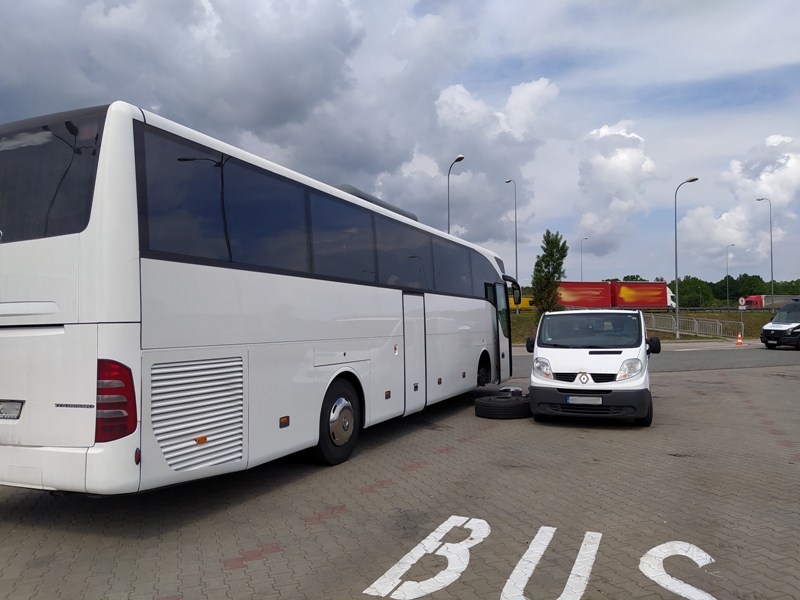 Przyjazdem na punkt kontrolny mobilnego serwisu zakończyła się kontrola autokaru przewożącego grupę młodzieży z Łańcuta do Władysławowa.