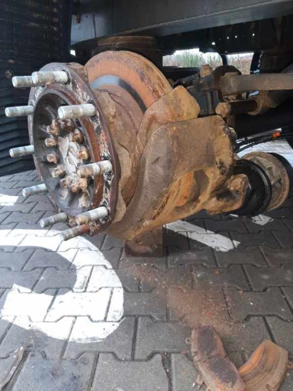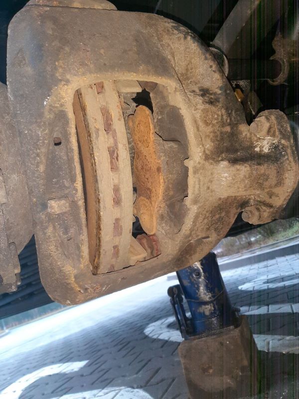 W trakcie kontroli stanu technicznego pojazdu inspektorzy stwierdzili, że tarcza hamulcowa zainstalowana na trzeciej osi naczepy ciężarowej pokryta jest dużą warstwą korozji.