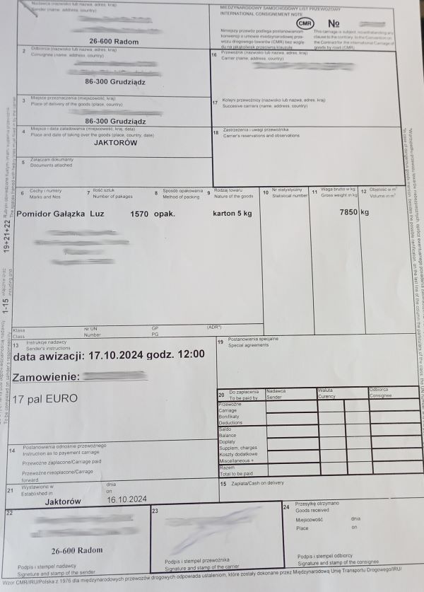 W dniu 17 października na autostradzie A1 w okolicach Torunia inspektorzy z WITD w Bydgoszczy wytypowali do kontroli pojazd należący do przewoźnika z Turcji. Wstępna kontrola dokumentów przewozowych wykazała, że pojazdem przewożone są pomidory z miejscowości Jaktorów w województwie mazowieckim do Grudziądza w województwie kujawsko-pomorskim. Stwierdzono zatem, że przewoźnik turecki realizuje przewóz kabotażowy, który przewoźnicy nie mający siedziby w państwie członkowskim Unii Europejskiej mogą wykonywać tylko po uzyskaniu zezwolenia na taki przewóz wydanego przez Głównego Inspektora Transportu Drogowego. Kontrolowany kierowca takiego zezwolenia nie posiadał. Ponadto okazane przez kierowcę potwierdzenie delegowania na terytorium Polski wystawione przez jego pracodawcę nie obejmowało swoim zakresem przewozu kabotażowego.
