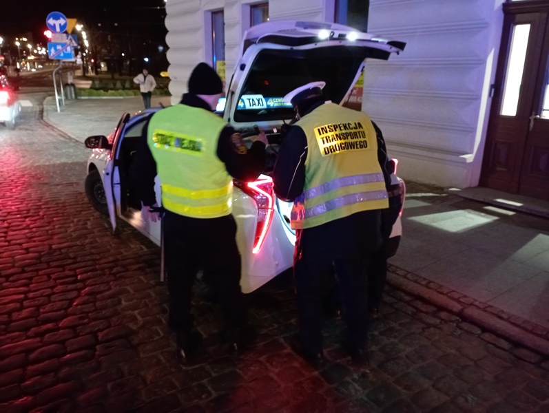 Kujawsko - pomorscy inspektorzy Inspekcji Transportu Drogowego wspólnie z funkcjonariuszami Policji, Straży Granicznej, Krajowej Administracji Skarbowej i Straży Miejskiej, tym razem w nocy 17 lutego br. ukierunkowali się na kontrole przepisów transportowych podczas wykonywania przewozów osób taksówkami na terenie Torunia.
