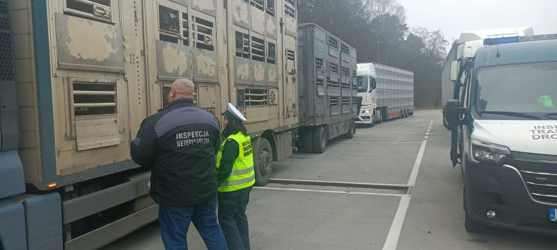 Lekarze weterynarii szczegółowo kontrolowali warunki i jakość przewozu zwierząt, natomiast inspektorzy WITD skupili swoją uwagę na weryfikacji stanu technicznego pojazdów oraz pozostałych regulacjach transportowych. Wspólne działania w 4 miejscach naszego województwa zakończyły się skontrolowaniem 14 pojazdów w wyniku czego ujawniono naruszenia związane z przepisami ustawy o transporcie drogowym.