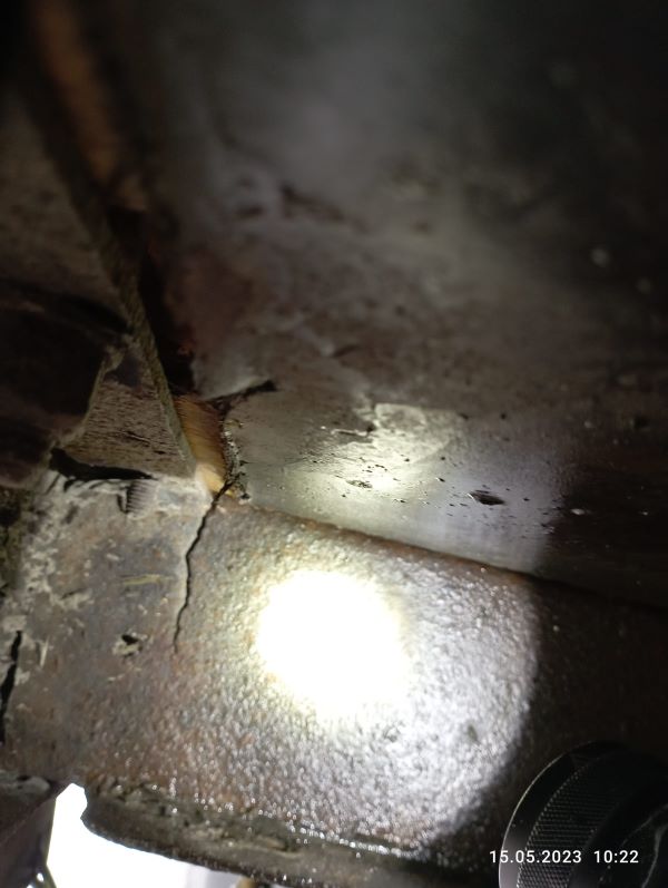 W trakcie oględzin naczepy kontrolujący stwierdził znaczną korozję podwozia, która przyczyniła się do osłabienia elementów konstrukcyjnych pod podłogą naczepy. Następstwem zbyt długiej eksploatacji skorodowanej naczepy było powstanie licznych pęknięć poprzecznych elementów konstrukcyjnych podwozia naczepy. Ponadto weryfikacja pojazdów w Centralnej Ewidencji Pojazdów i Kierowców wykazała brak ważnego okresowego badania technicznego w ciągniku siodłowym. Kierowca od ponad miesiąca wykonywał przewozy drogowe bez przeglądu technicznego. Stwierdzone nieprawidłowości skutkowały zatrzymaniem dowodów rejestracyjnych oraz wszczęciem postępowania administracyjnego wobec przewoźnika. Z uwagi na stwierdzone usterki niebezpieczne w naczepie kierowcy wydano zakaz dalszej jazdy z parkingu sąsiadującego z punktem kontroli drogowej.