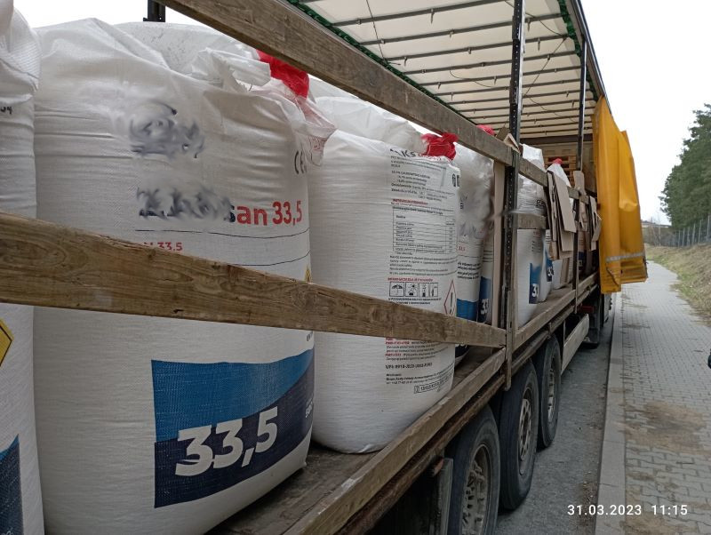 W trakcie kontroli ładowni naczepy stwierdzono, iż kierowca w żaden sposób nie zabezpieczył przed zmianą położenia ładunku 24 ton nawozów sztucznych. Dodatkowo stwierdzono nieprawidłowe rozmieszczenie ładunku – 3 worki typu big-bag były spiętrzone i załadowane „na leżąco”, co nie było dozwolone w przypadku tego rodzaju ładunku i opakowania. Oprócz tego ujawniono braki w dokumentacji i obowiązkowym wyposażeniu pojazdu przewożącego materiały niebezpieczne. W wyniku dalszych oględzin pojazdu kontrolujący inspektor stwierdził liczne pęknięcia poprzeczek pod podłogą naczepy oraz pękniecie wzdłużnego elementu konstrukcyjnego naczepy. Stwierdzenie tej usterki skutkowało zakazem dalszej jazdy, wszczęciem postepowania administracyjnego wobec przewoźnika, zatrzymaniem dowodu rejestracyjnego oraz ukaraniem kierowcy mandatem karnym. Wobec przewoźnika i załadowcy zostaną również wszczęte postępowania administracyjne z tytułu naruszeń ustawy o przewozie towarów niebezpiecznych.