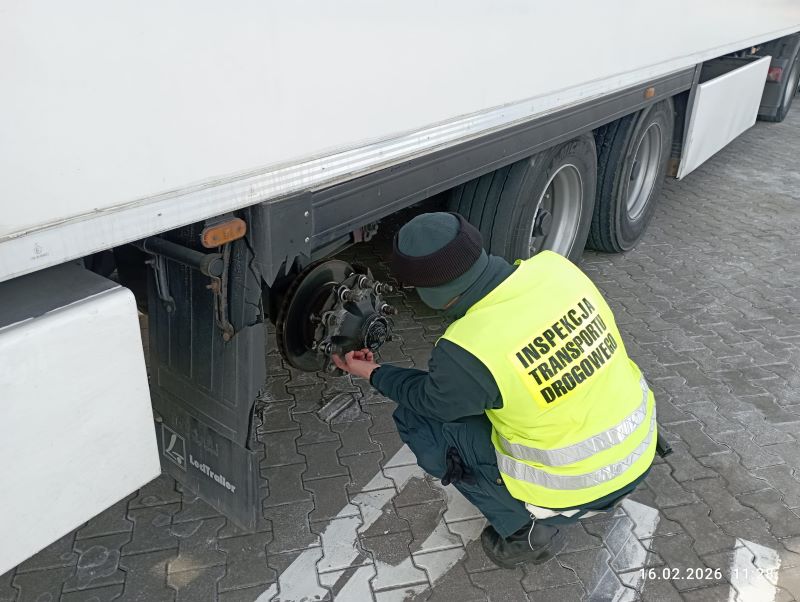 16 lutego 2026 r. na autostradzie A1 w miejscowości Nowa Wieś kujawsko-pomorscy inspektorzy transportu drogowego zatrzymali do kontroli hiszpański pojazd członowy wykonujący międzynarodowy przewóz drogowy na trasie Niemcy-Polska. W trakcie czynności ujawniono szereg bardzo poważnych nieprawidłowości technicznych oraz naruszeń przepisów dotyczących rejestrowania aktywności i czasu pracy kierowcy.