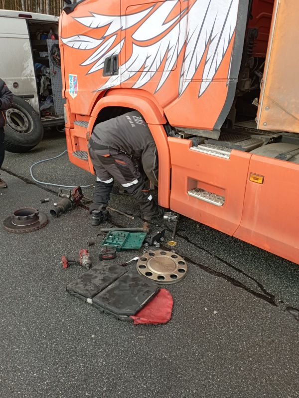 W tym samym dniu inspektorzy działający w Grudziądzu zatrzymali polskiego przewoźnika wykonującego krajowy transport drogowy. W trakcie oględzin pojazdu i kontroli stanu technicznego inspektorzy stwierdzili, iż również na osi kierowanej kontrolowanego ciągnika samochodowego tarcza hamulcowa nie nadaje się do dalszej eksploatacji – tarcza posiadała 4 pęknięcia. Dodatkowo, inspektorzy stwierdzili poważną usterkę - układ samo-diagnostyki systemu przeciwblokującego ABS sygnalizował usterkę.