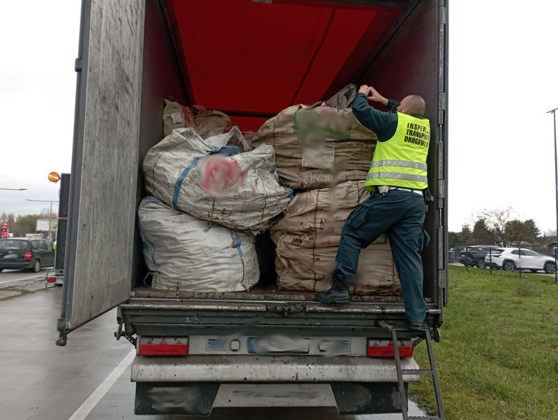 Kontrola miała miejsce w dniu 17 listopada br., na terenie miasta Bydgoszczy. Wstępne oględziny ładowni wskazywały, iż z terenu województwa dolnośląskiego przewożone są odpady z tworzyw sztucznych. Kierujący nie posiadał w pojeździe i nie okazał do kontroli dokumentu potwierdzającego rodzaj transportowanych odpadów, okazał jedynie WZ na której określono ładunek jako PCV i kabel do przerobu. Na miejsce kontroli zostali wezwani inspektorzy Wojewódzkiego Inspektoratu Ochrony Środowiska (WIOŚ) – którzy to zweryfikowali niezbędne uprawnienia dla podmiotu gospodarczego oraz określili kody odpadów.