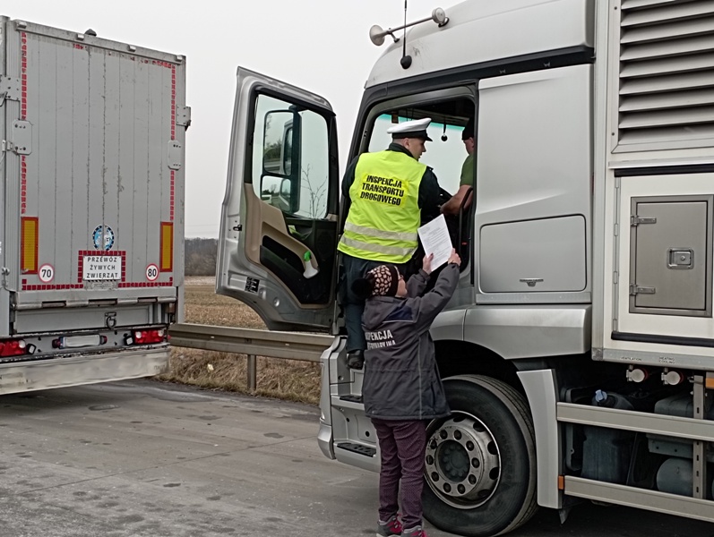 Wzmożone kontrole pojazdów przewożących żywe zwierzęta prowadzone były przez cały czwartek (9 marca) w siedmiu powiatach województwa kujawsko-pomorskiego. Ich głównym celem było zapewnienie dobrostanu zwierząt podczas przewozu – zarówno dużymi ciężarówkami, jak i małymi busami towarowymi o dopuszczalnej masie całkowitej do 3,5 tony. Inspektorzy Inspekcji Transportu Drogowego weryfikowali, czy przedsiębiorcy przewożący zwierzęta przestrzegają przepisów transportowych, m.in. w zakresie stanu technicznego, trzeźwości i czasu pracy kierowców oraz zasad użytkowania tachografów. Z kolei kontrolerzy z Powiatowych Inspektoratów Weterynarii weryfikowali czy nie jest przewożona zbyt duża ilość zwierząt w stosunku do powierzchni ładowni oraz czy pojazdy są regularnie dezynfekowane, a także czy w pojazdach znajduje się wymagana dokumentacja dotycząca pochodzenia i stanu zdrowia zwierząt. W czterech pojazdach stwierdzono naruszenia obowiązujących przepisów. Niechlubnym „rekordzistą dnia” okazał się pojazd przewożący trzodę chlewną, który próbując ominąć stacjonarny punkt kontroli na drodze wojewódzkiej nr 240 w powiecie tucholskim, został zatrzymany przez inspektorów ITD na drodze alternatywnej. Powodem takiego zachowania kierowcy był brak licencji na wykonywanie transportu drogowego przez jego pracodawcę, brak decyzji organu Państwowej Inspekcji Weterynaryjnej dopuszczającej środek transportu do przewozu żywych zwierząt, poważne usterki techniczne pojazdu, m.in. wycieki płynów eksploatacyjnych, całkowicie zużyte opony oraz uszkodzony tachograf. W tym przypadku inspektorzy ITD ukarali kierowcę mandatem karnym, a wobec przewoźnika wszczęto postępowanie administracyjne o nałożenie kary pieniężnej. Z kolei kontrolerzy Inspekcji Weterynaryjnej w kontrolowanych pojazdach stwierdzili: niespełnienie wymagań przez środek transportu przeznaczony do długotrwałego przewozu zwierząt (powyżej 8 godzin) w zakresie braku systemu kontroli temperatury oraz systemu ostrzegania o przekroczeniach dopuszczalnych temperatur, brak systemu nawigacji, a także braki w dokumentacji związanej z przewożonymi zwierzętami.